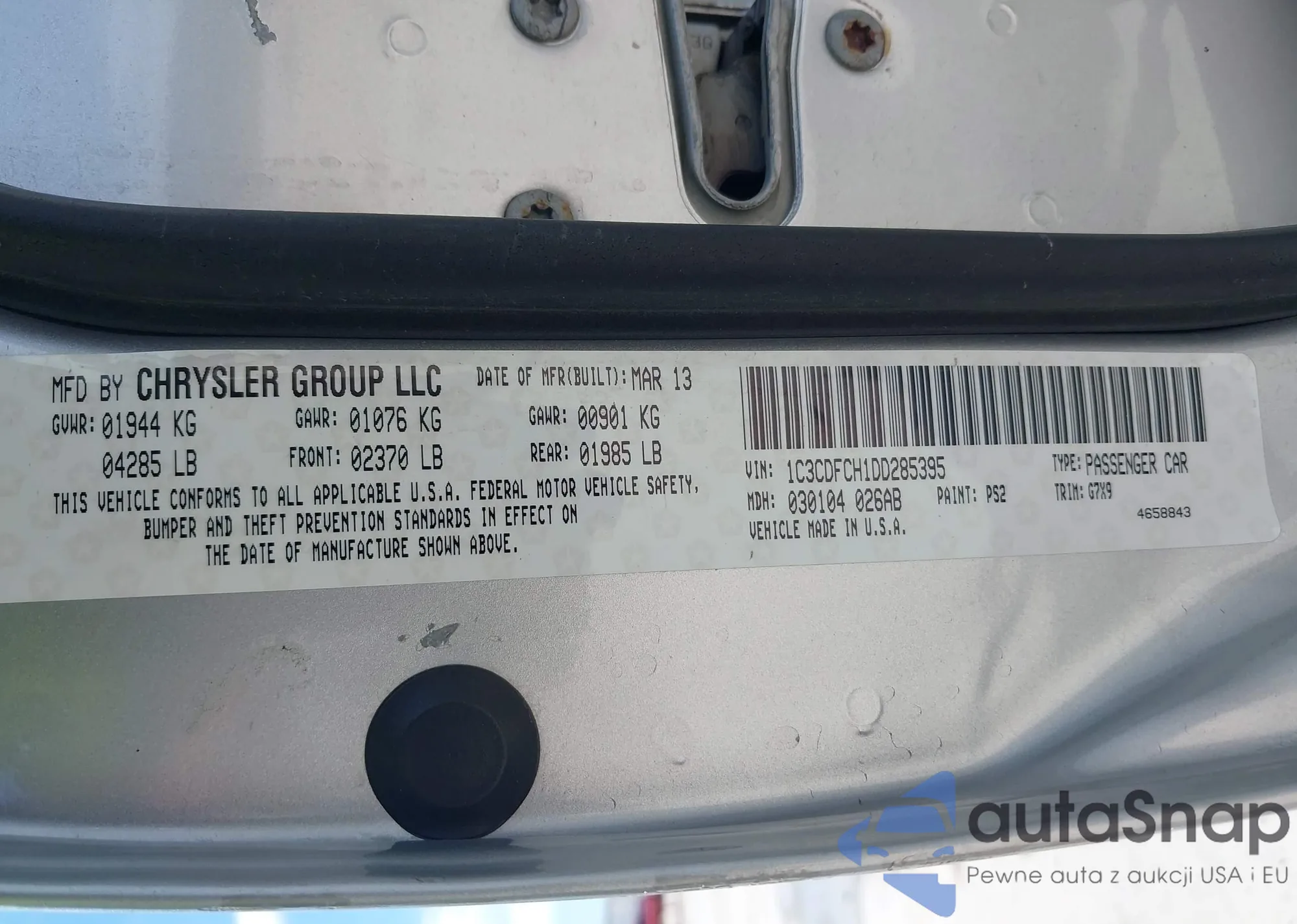 LOT: 42222976 VIN: 1C3CDFCH1DD285395