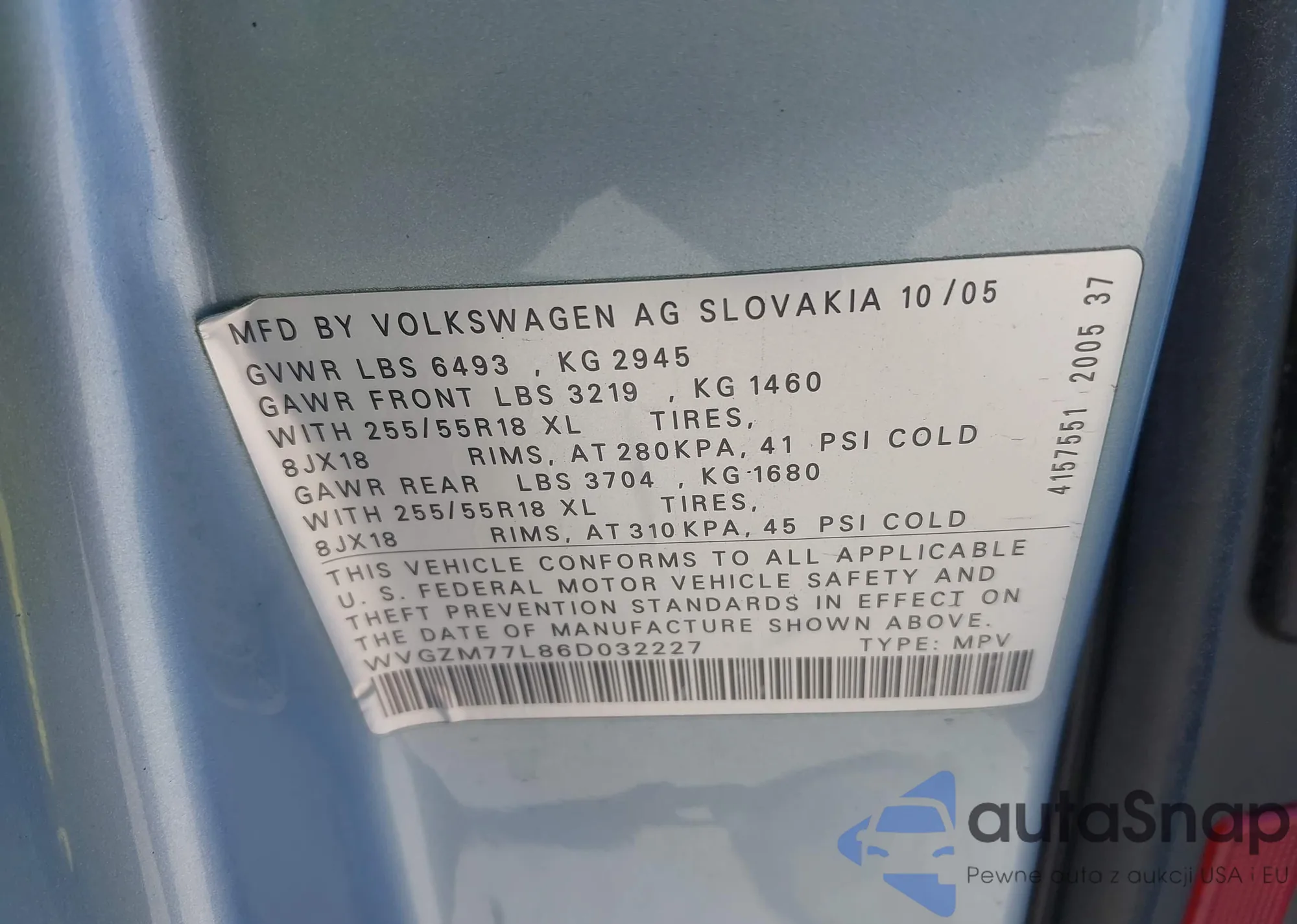 LOT: 42228476 VIN: WVGZM77L86D032227