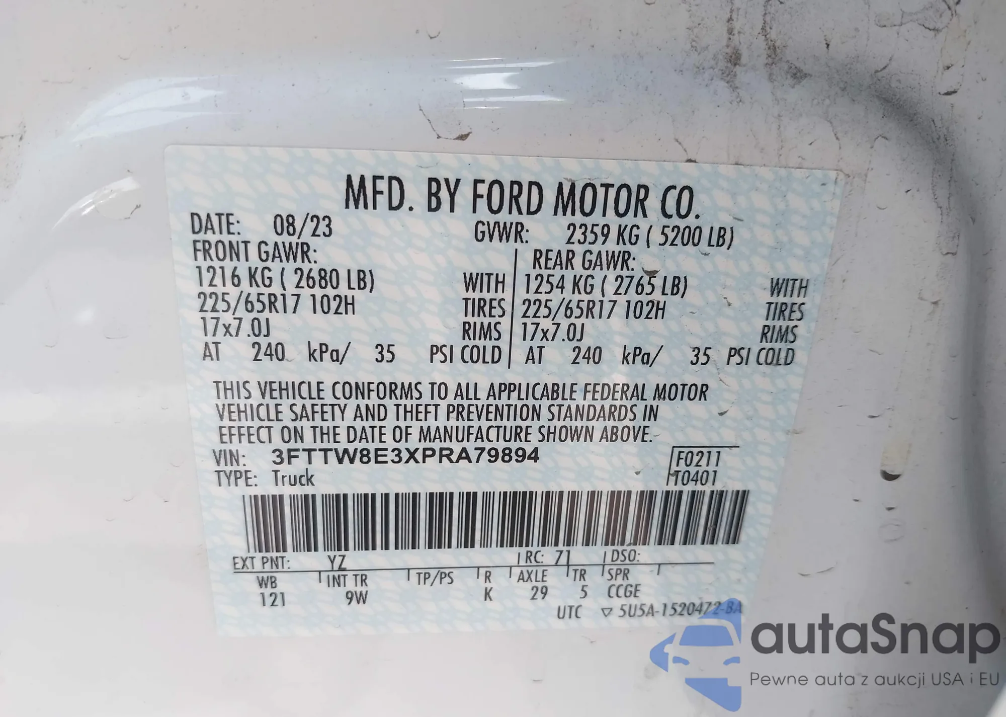 • VIN 3FTTW8E3XPRA79894