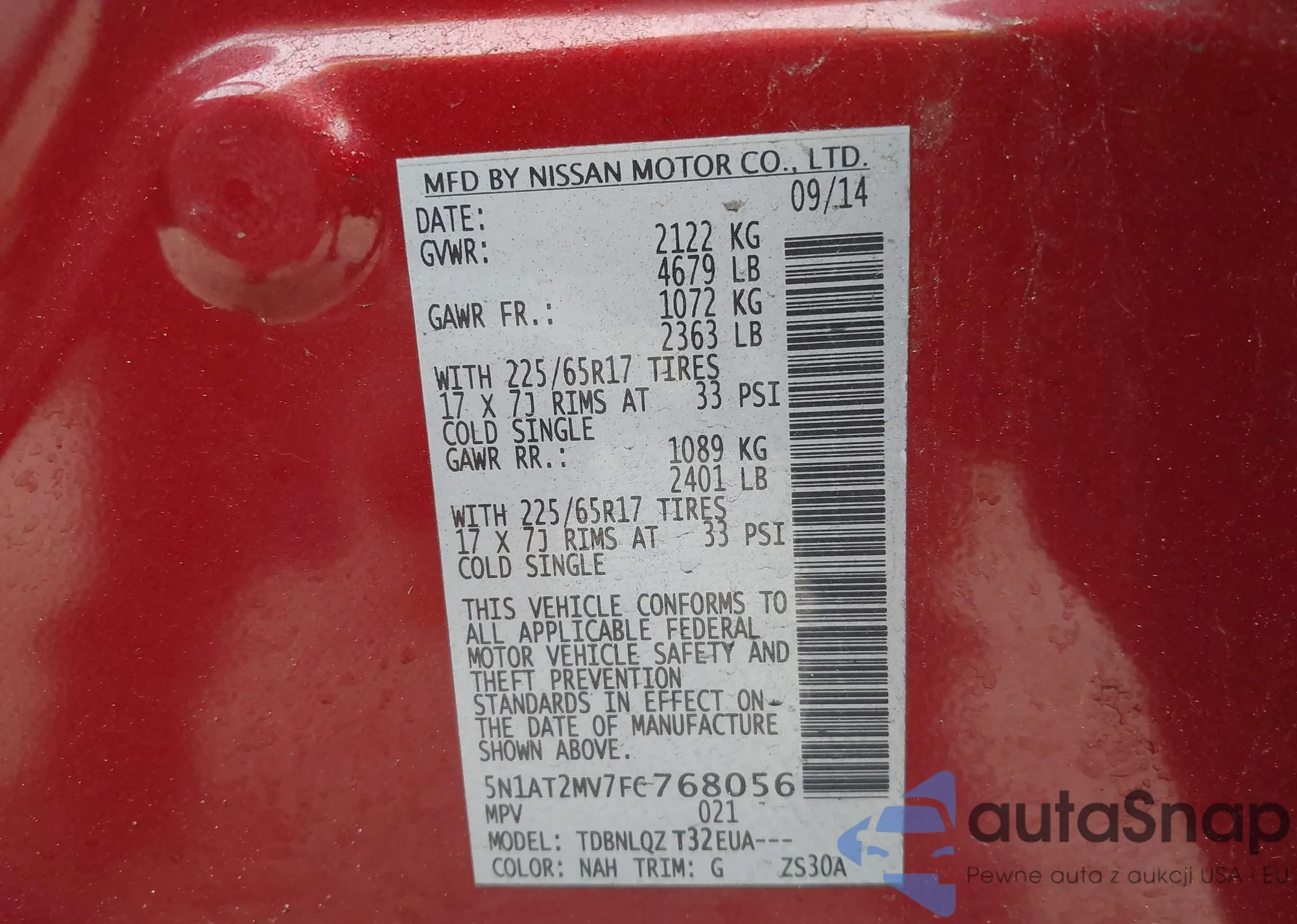 • VIN 1N4AA5AP1BC838474
