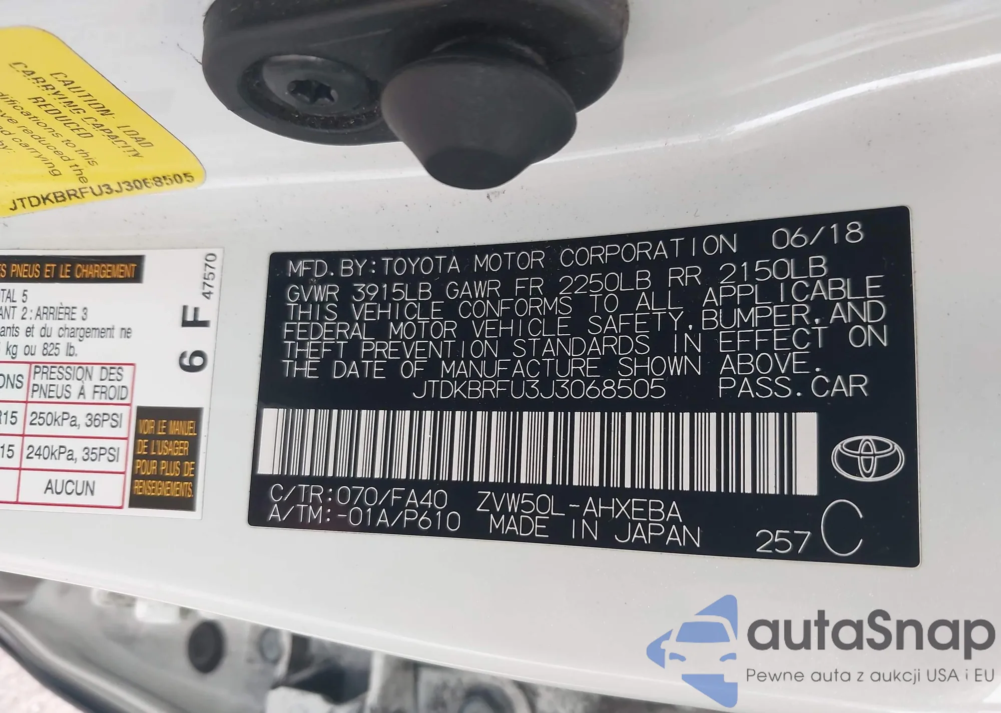 • VIN JTDKBRFU3J3068505