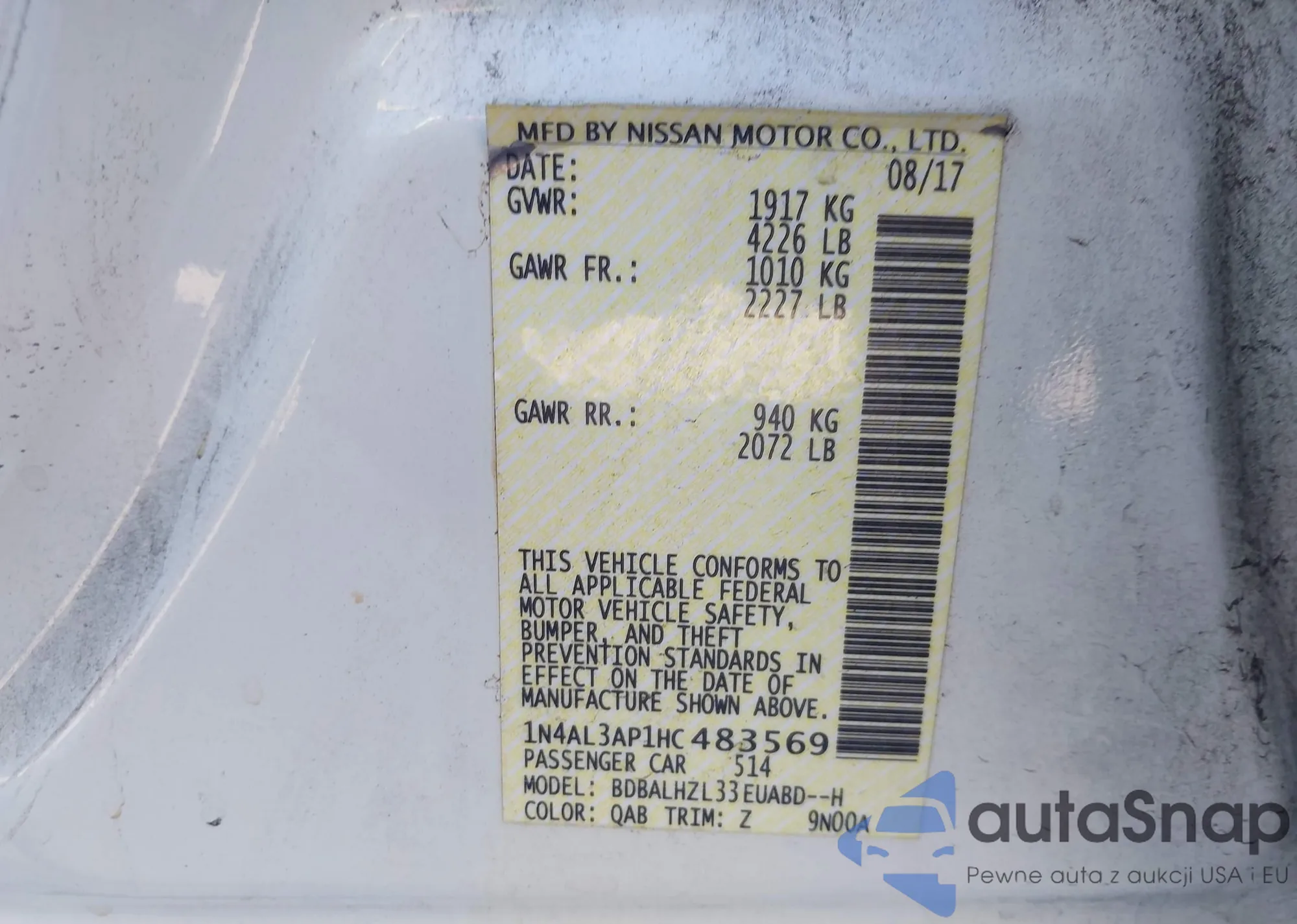 LOT: 41517574 VIN: 1N4AL3AP7EC172952