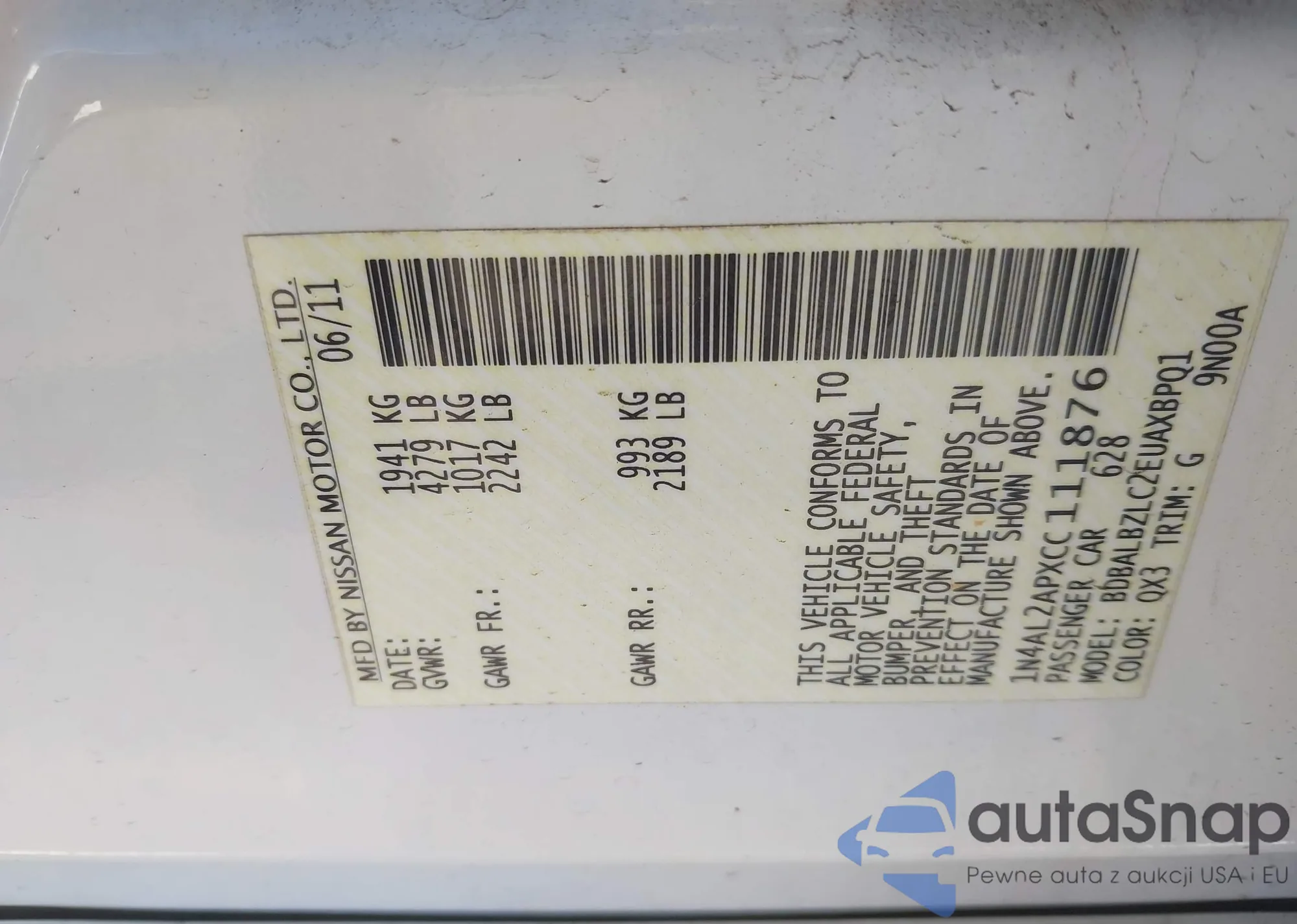 • VIN 1N4AL2APXCC111876