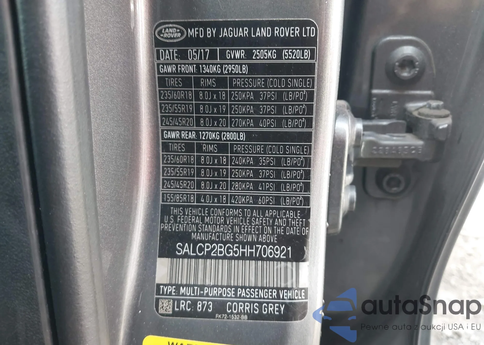 • VIN SALCP2BG5HH706921