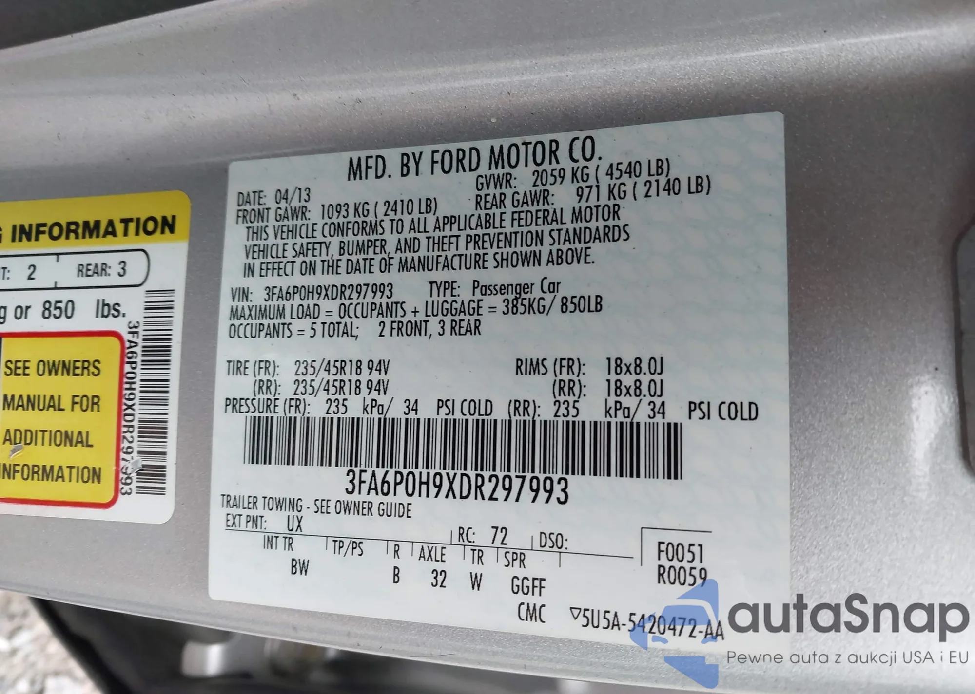 • VIN 3FA6P0H9XDR297993