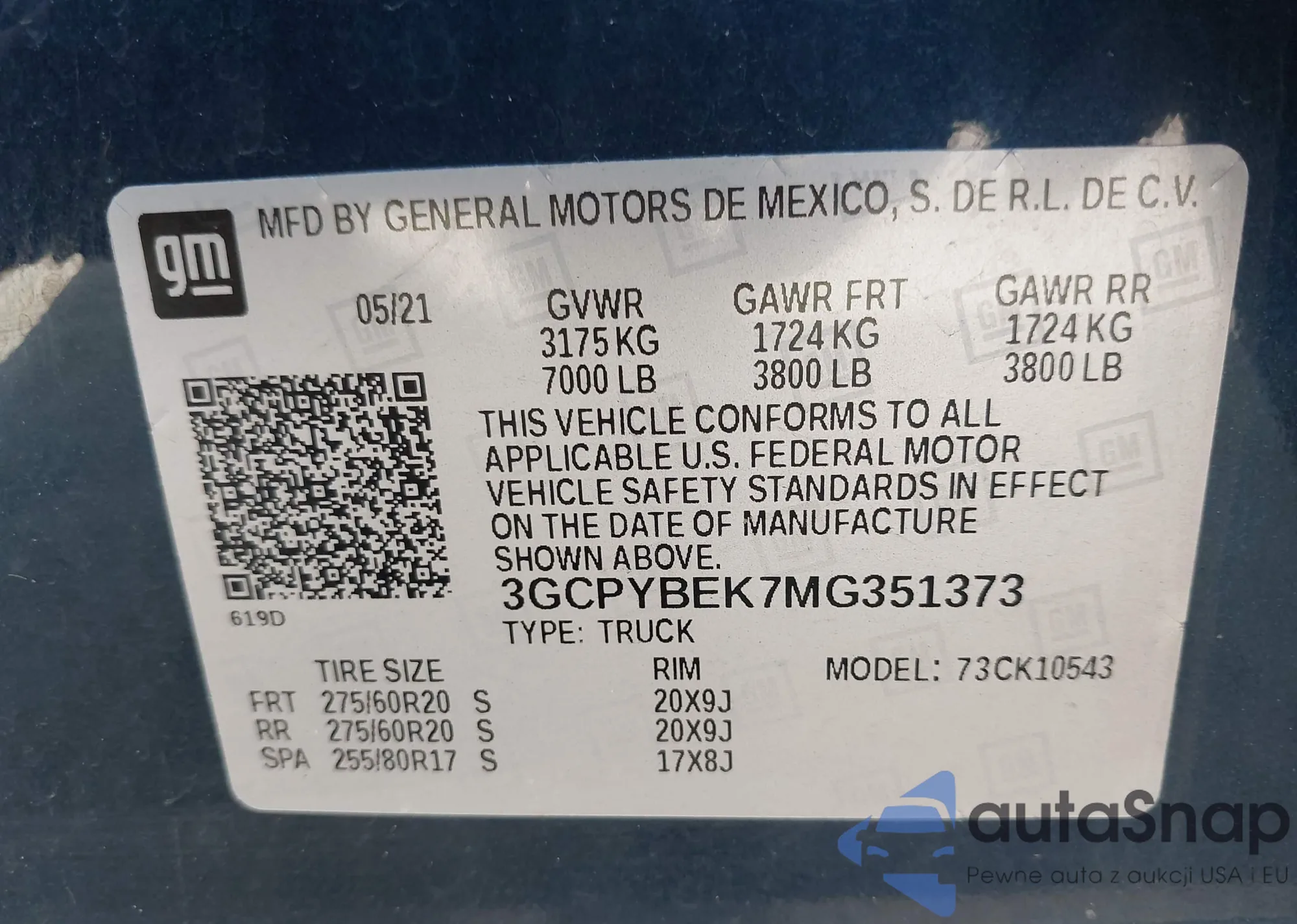 LOT: 41853494 VIN: 3GCPYBEK7MG351373