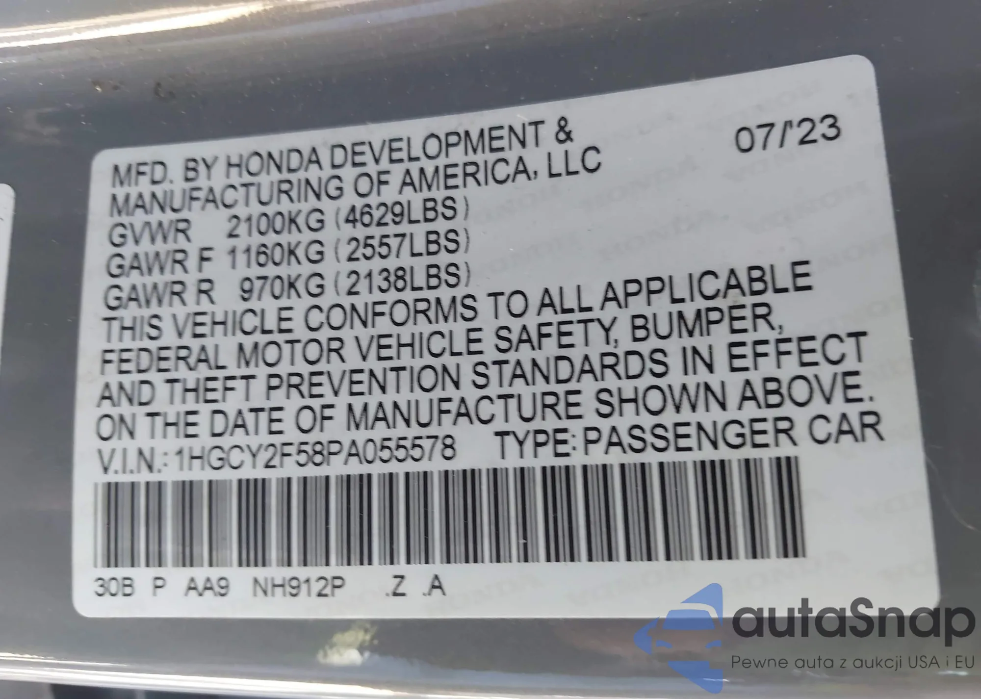 LOT: 42326010 VIN: 19UDE4H64PA000804