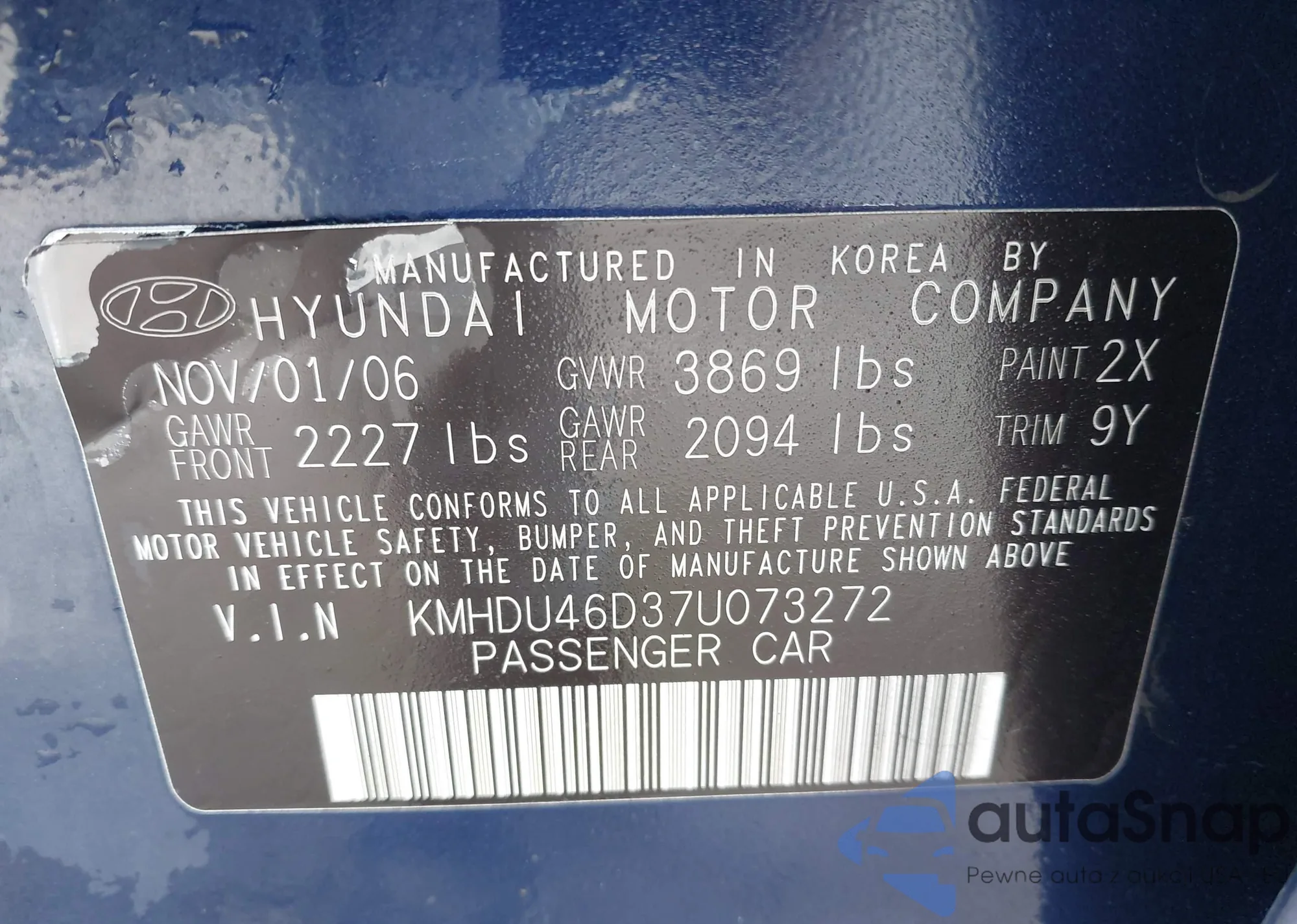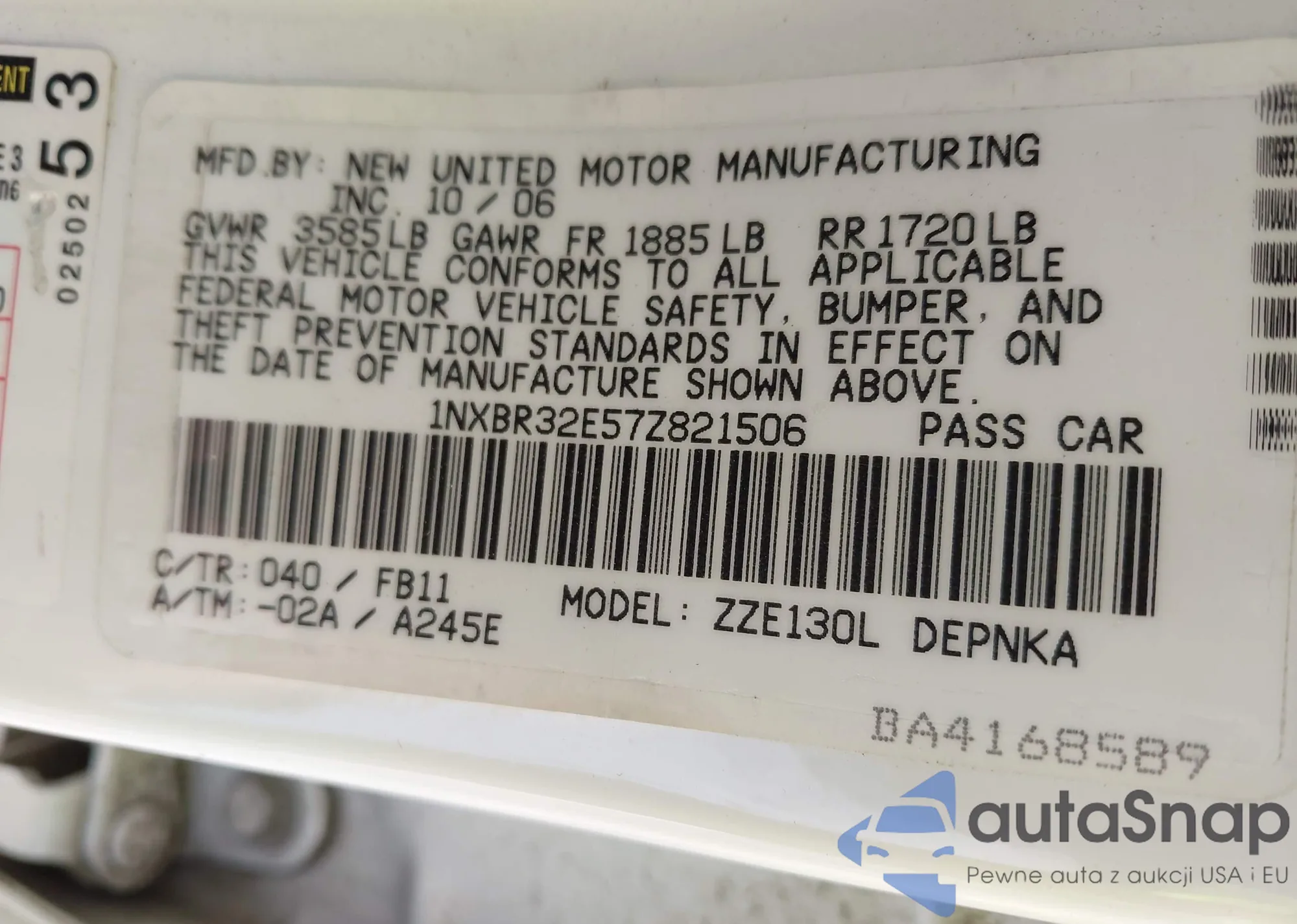 LOT: 42080287 VIN: JTDZN3EU6C3100001