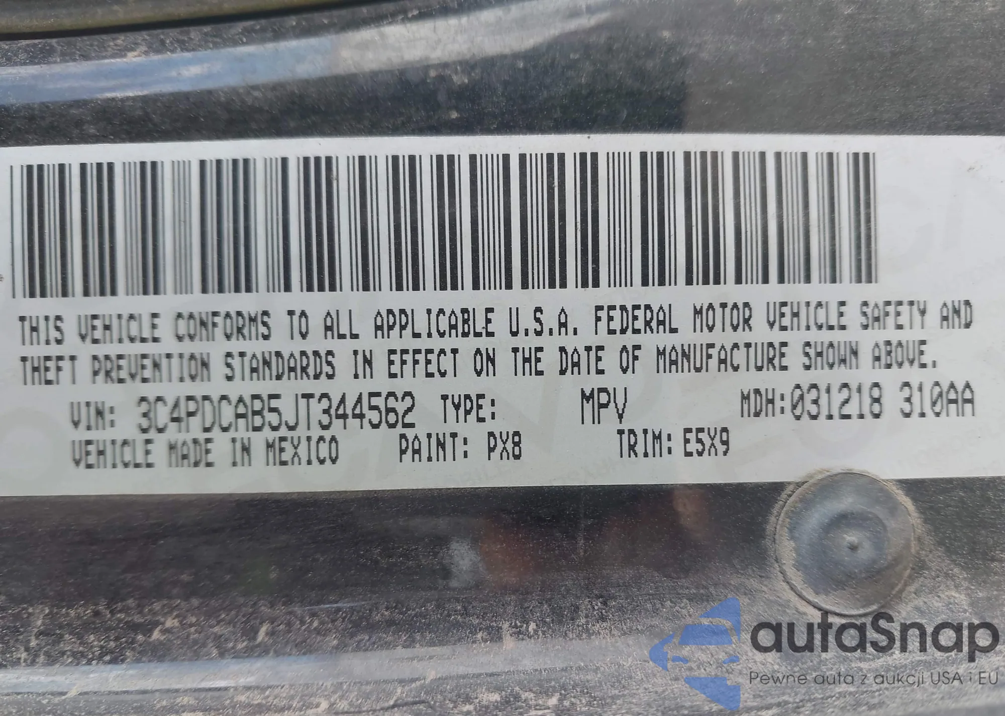 • VIN 3C4PDCAB5JT344562