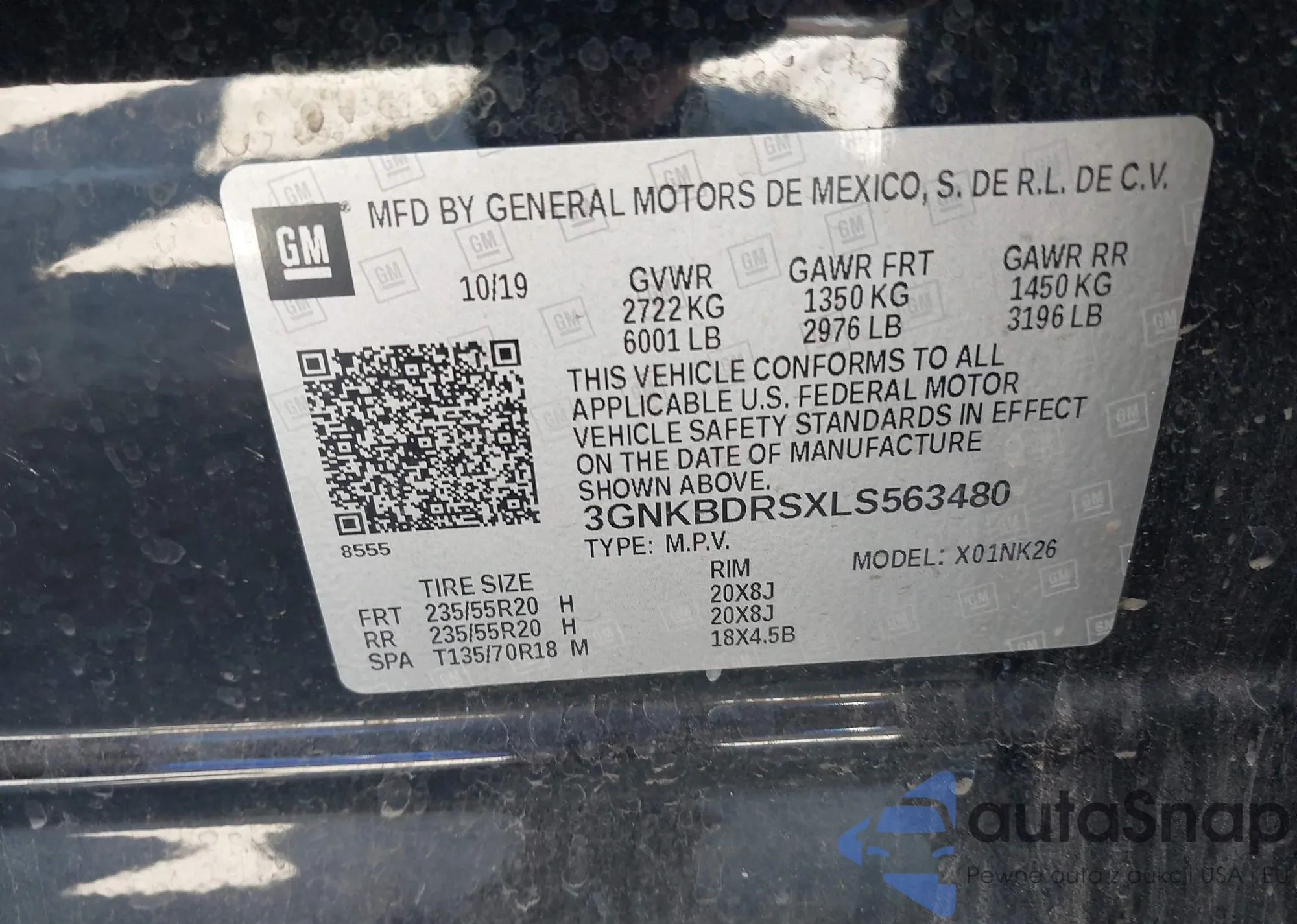 LOT: 42078861 VIN: 3GNKBDRSXLS563480