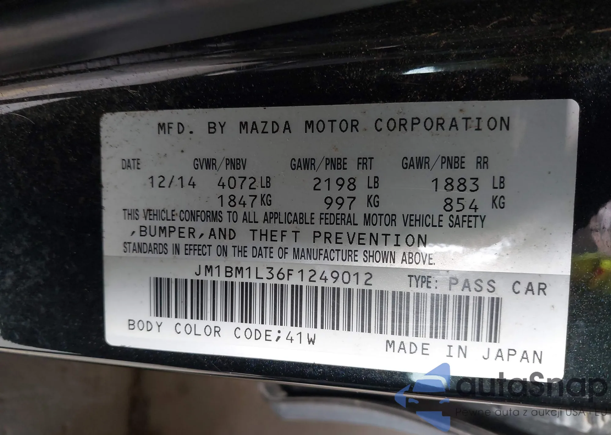 LOT: 42079009 VIN: JM1BM1L36F1249012