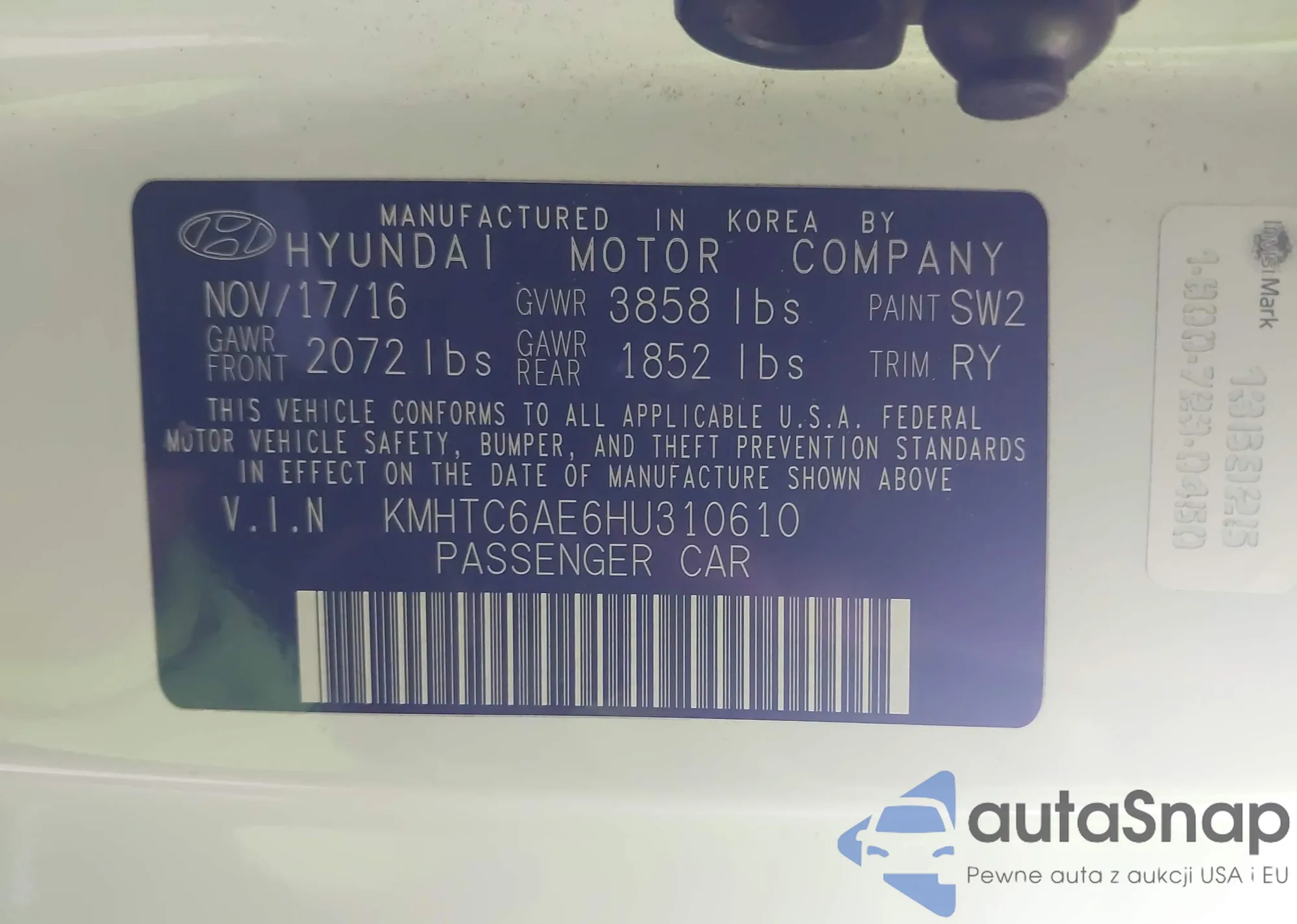 • VIN WBA8B9G33HNU57060