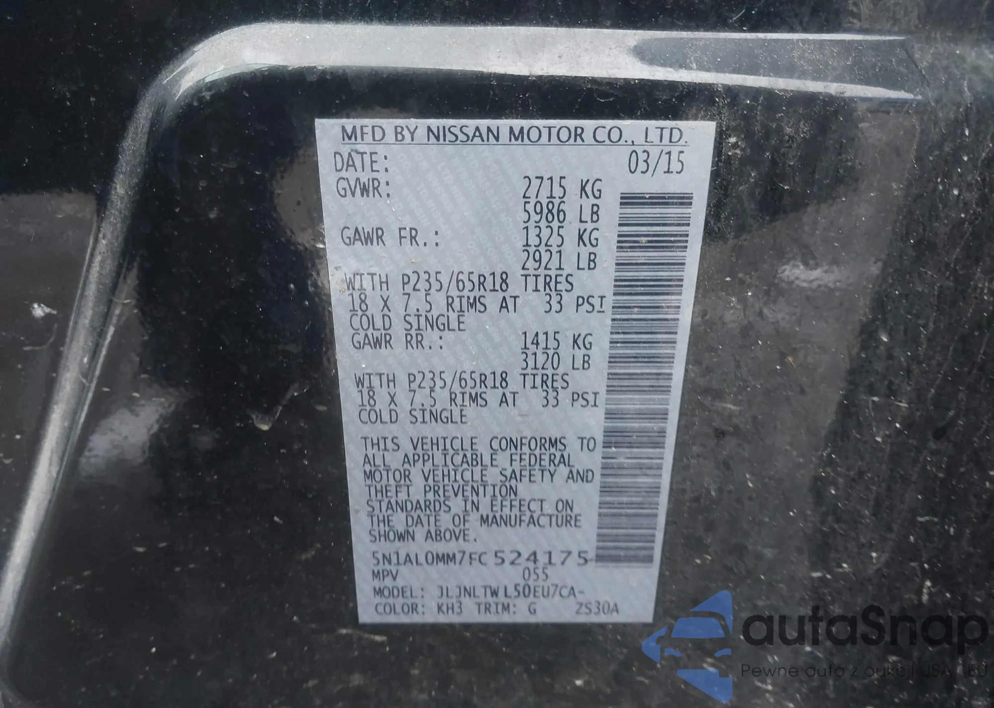 LOT: 41417720 VIN: 5N1AL0MM7FC524175