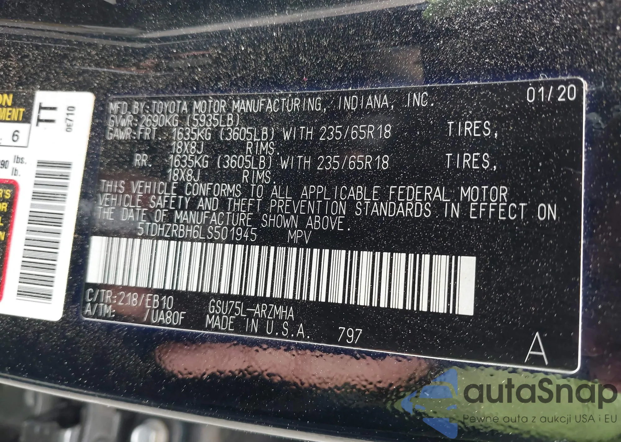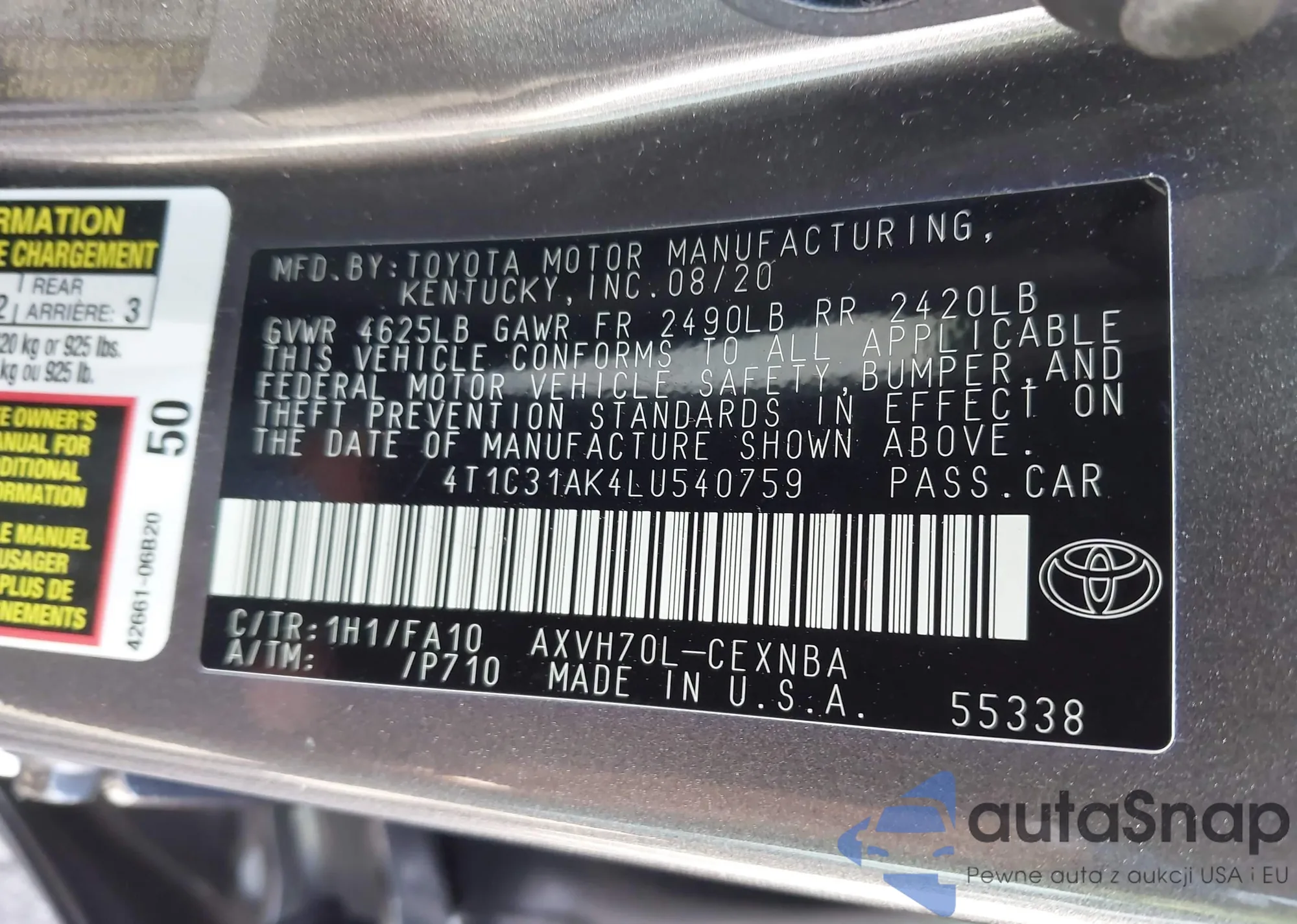 LOT: 42114596 VIN: JTDKB20U297844935