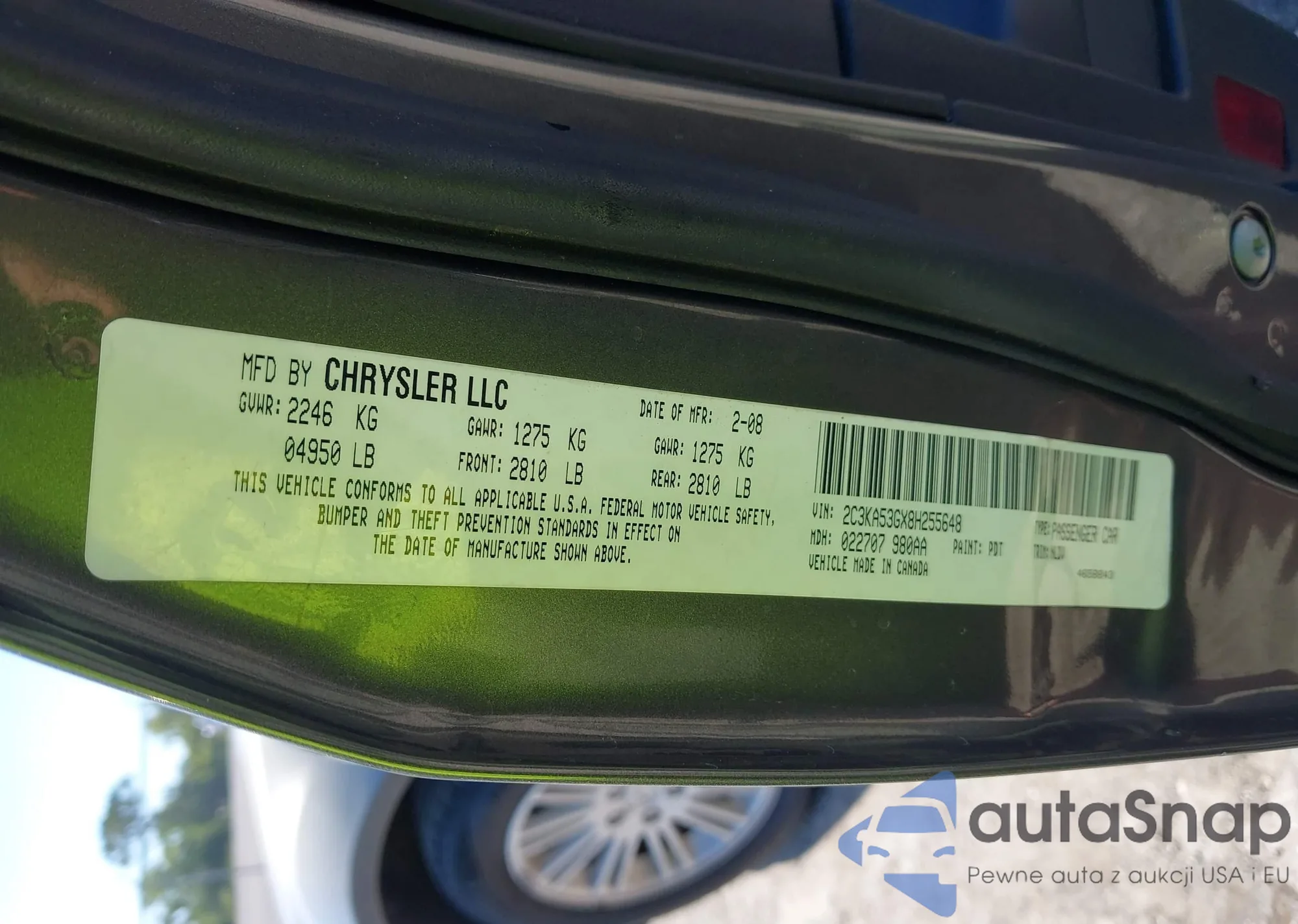 LOT: 42289303 VIN: 2C3KA53GX8H255648