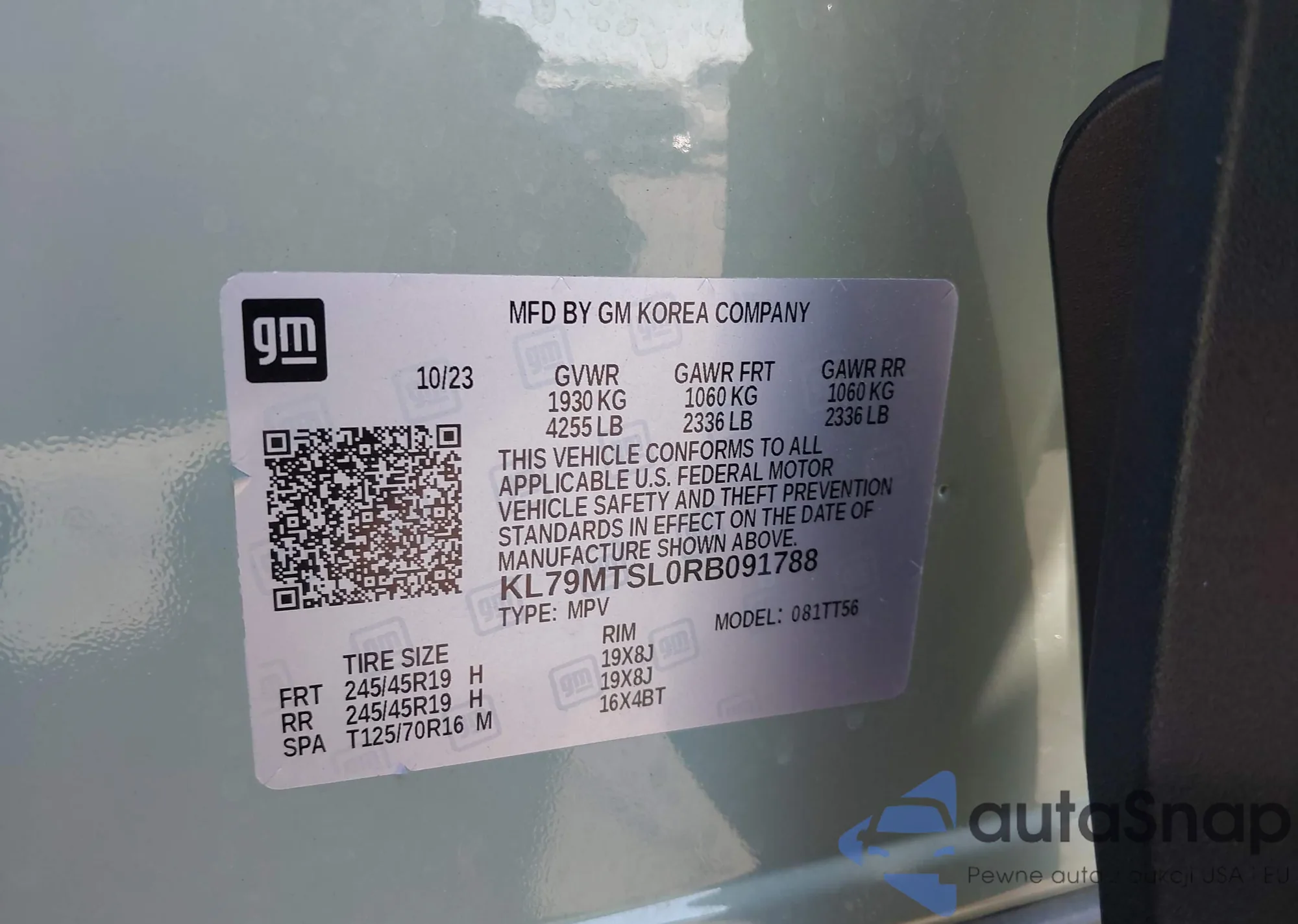 • VIN KL79MTSL0RB091788