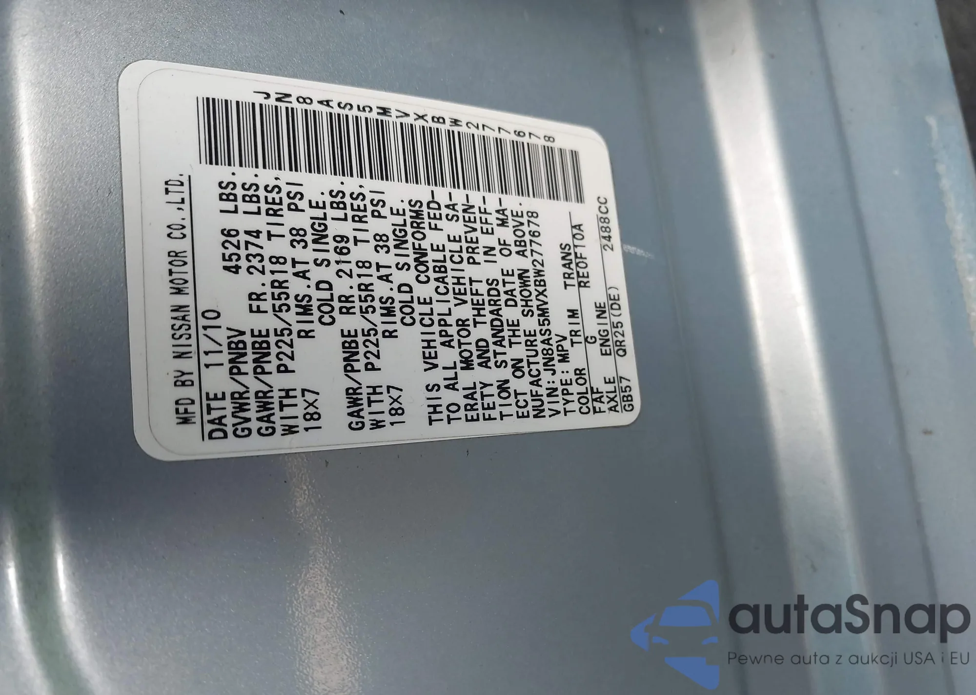LOT: 42288285 VIN: JA4AZ2A34JZ008883