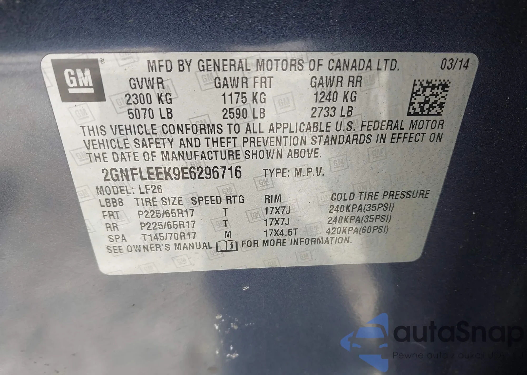 LOT: 41375035 VIN: 2GNFLEEK9E6296716
