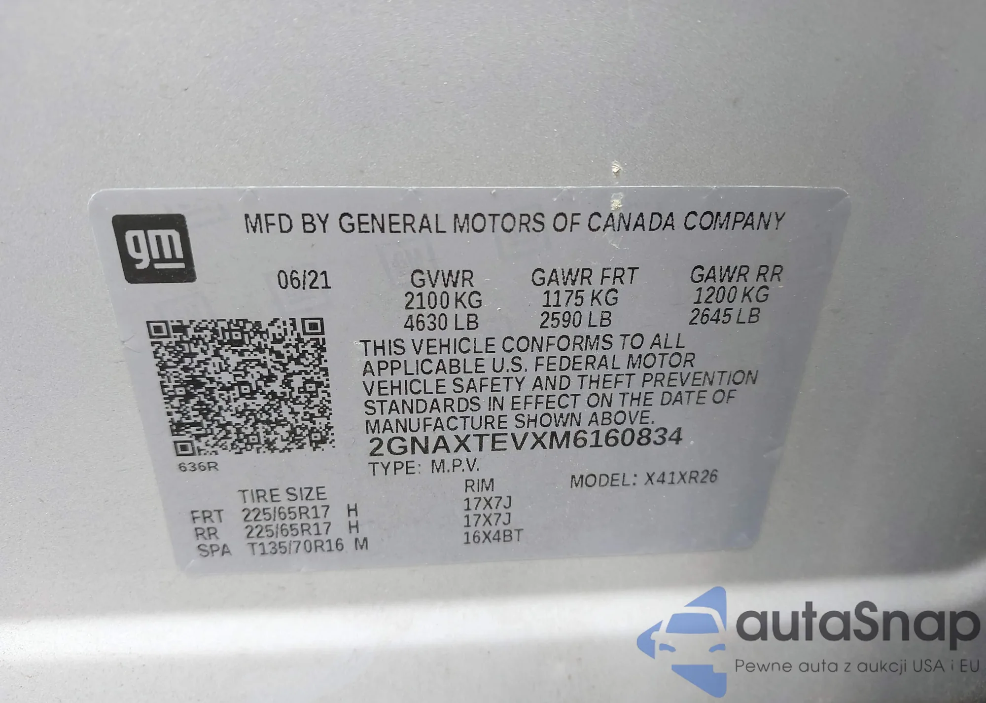 • VIN 2GNAXTEVXM6160834