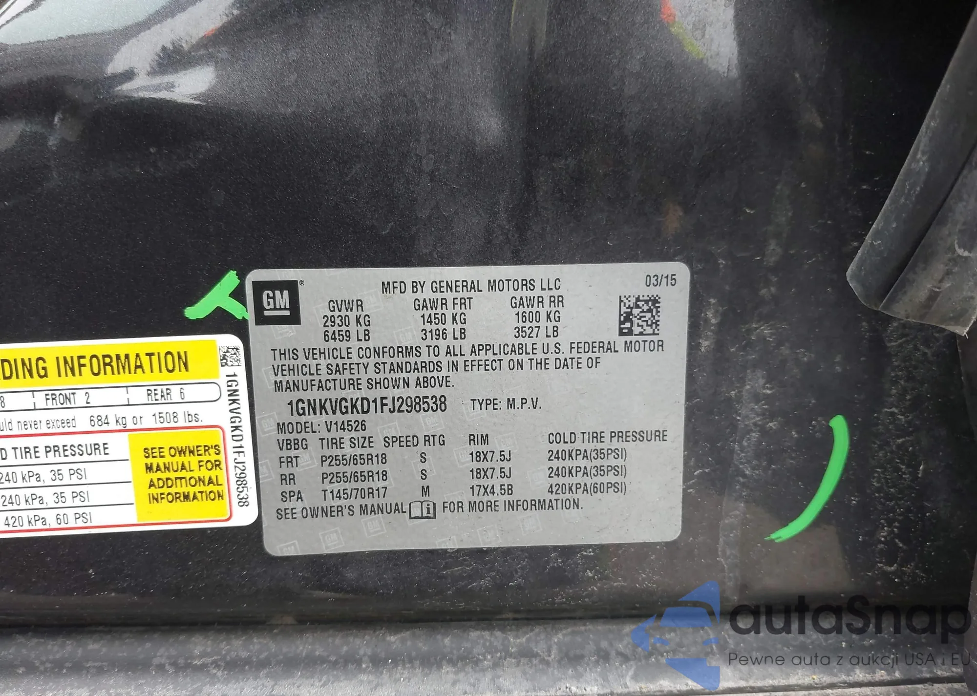 • VIN 1GNKVGKD1FJ298538
