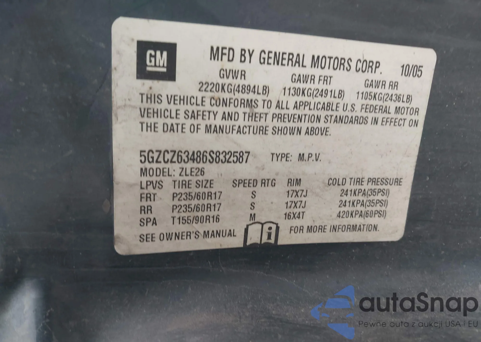 LOT: 41726209 VIN: 5GZCZ63486S832587