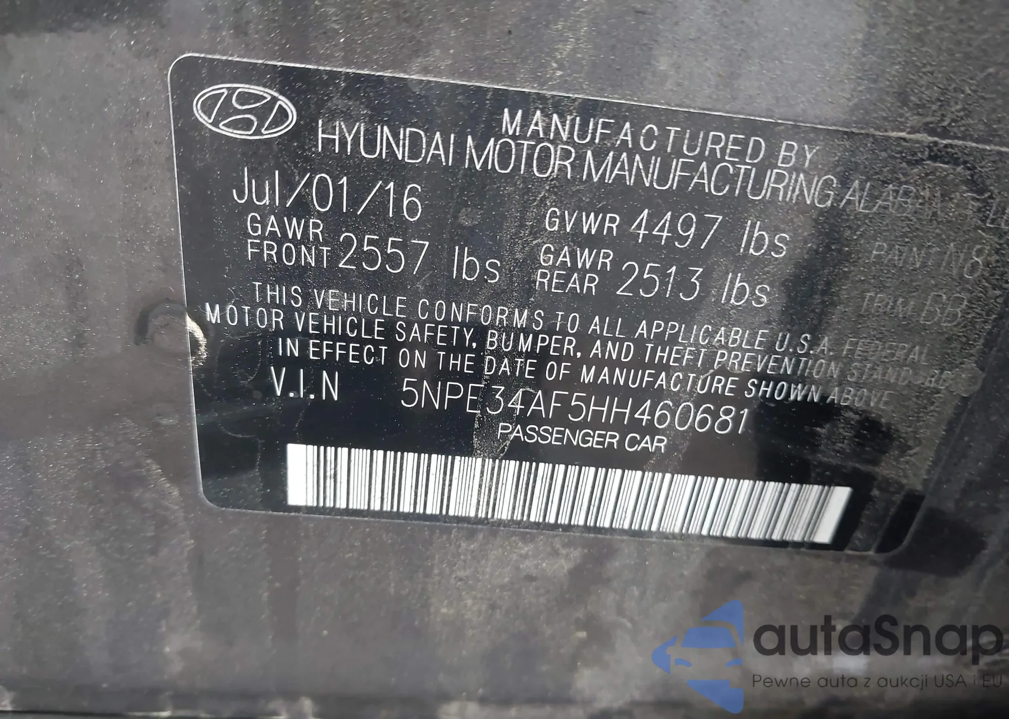 • VIN 5NPE34AF5HH460681