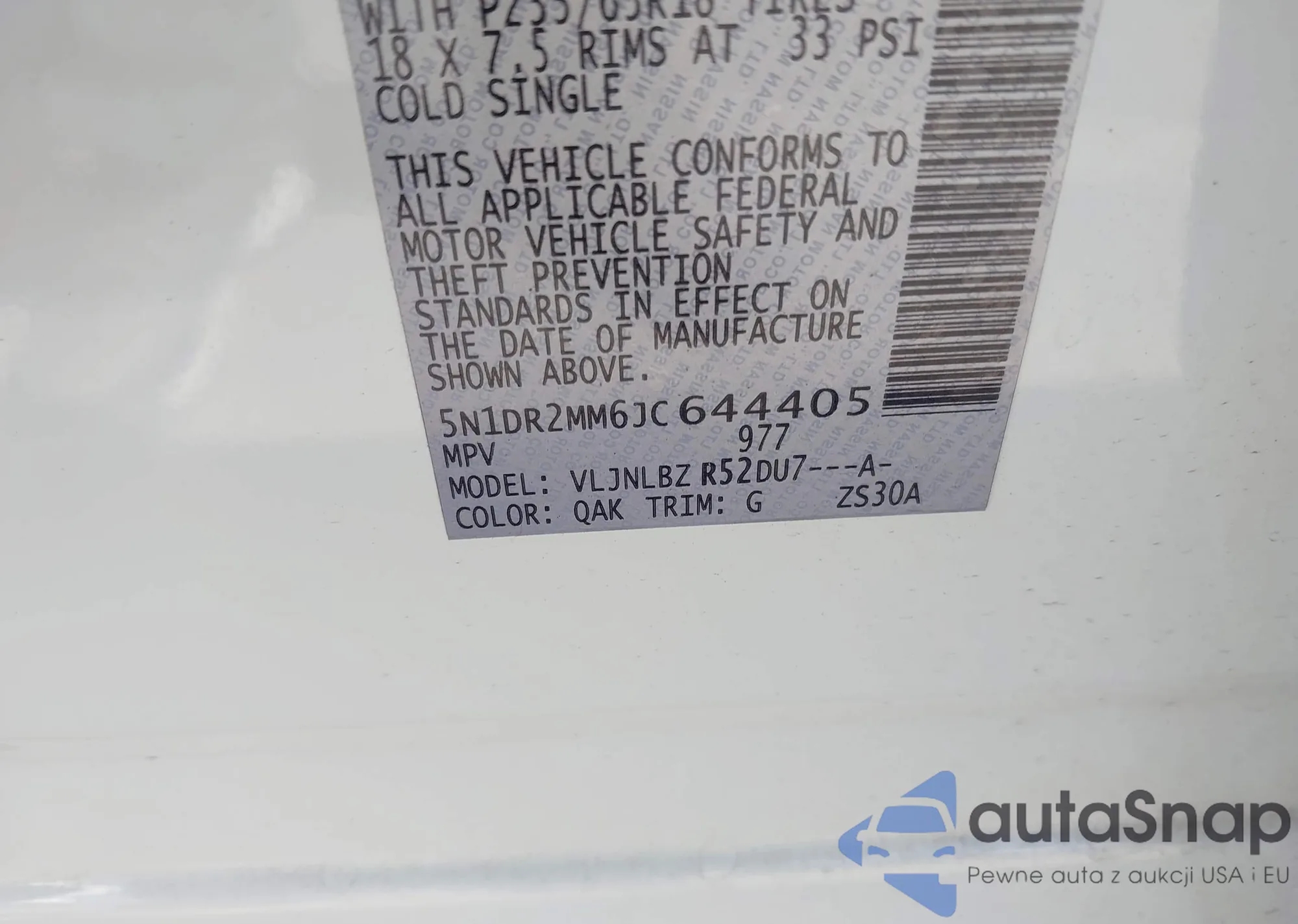 LOT: 42294205 VIN: 1N6BD0CT9JN728226