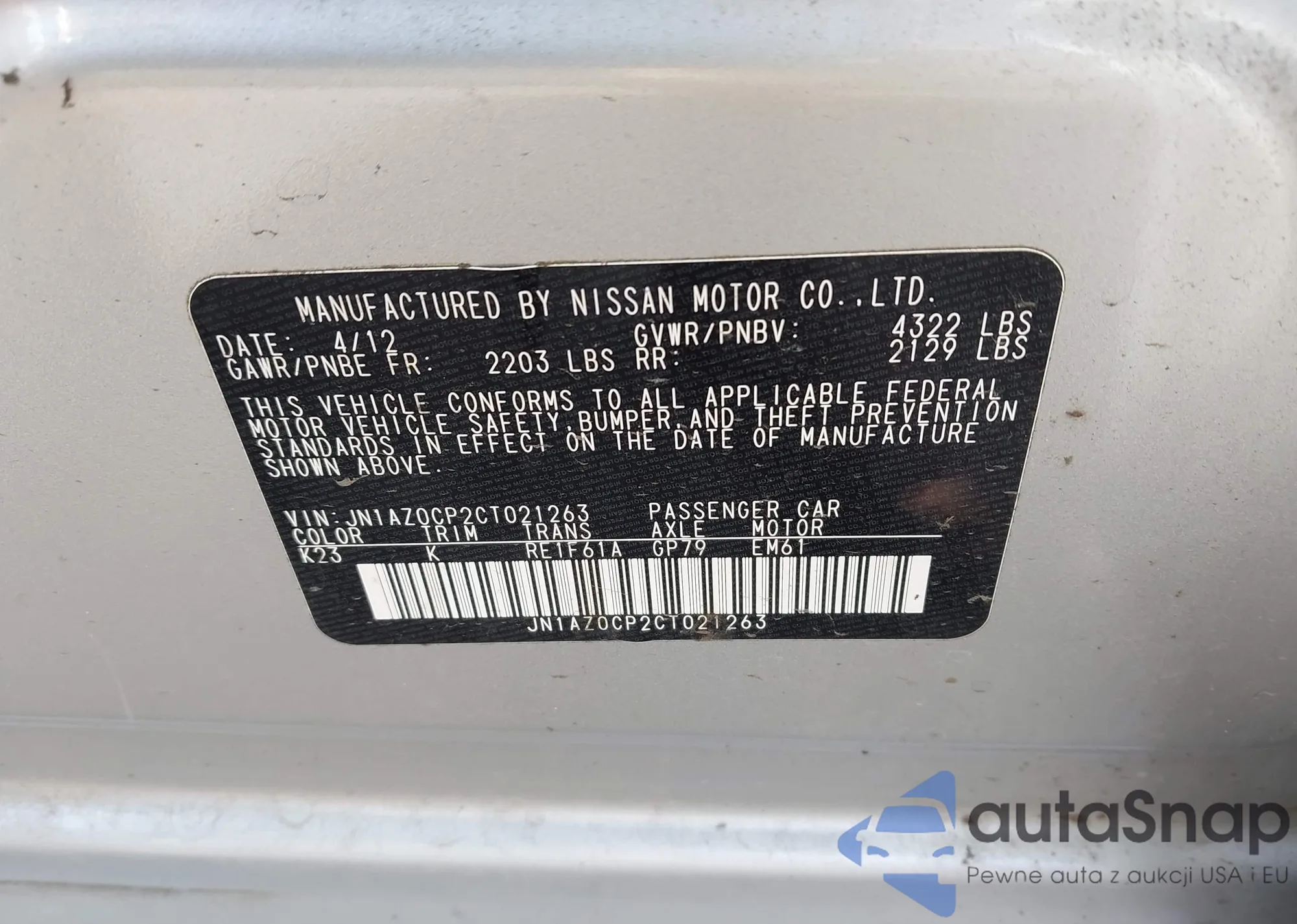 LOT: 42233513 VIN: JN1AZ0CP2CT021263