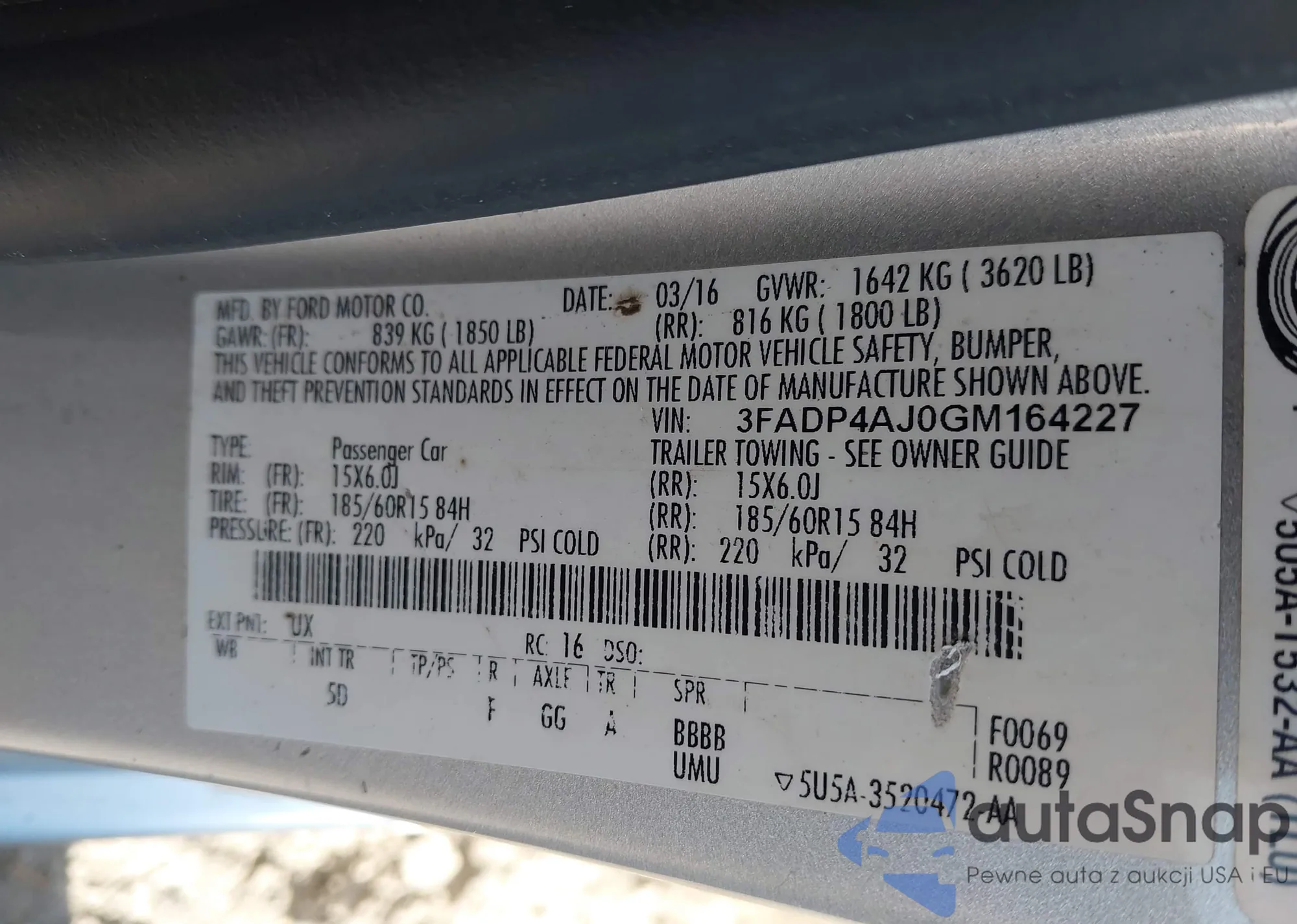 LOT: 42235983 VIN: 3FADP4AJ0GM164227