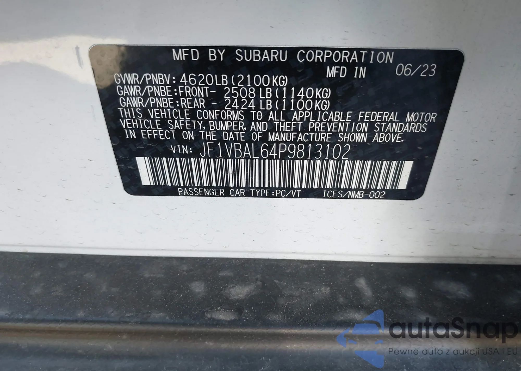 • VIN JF1VBAL64P9813102