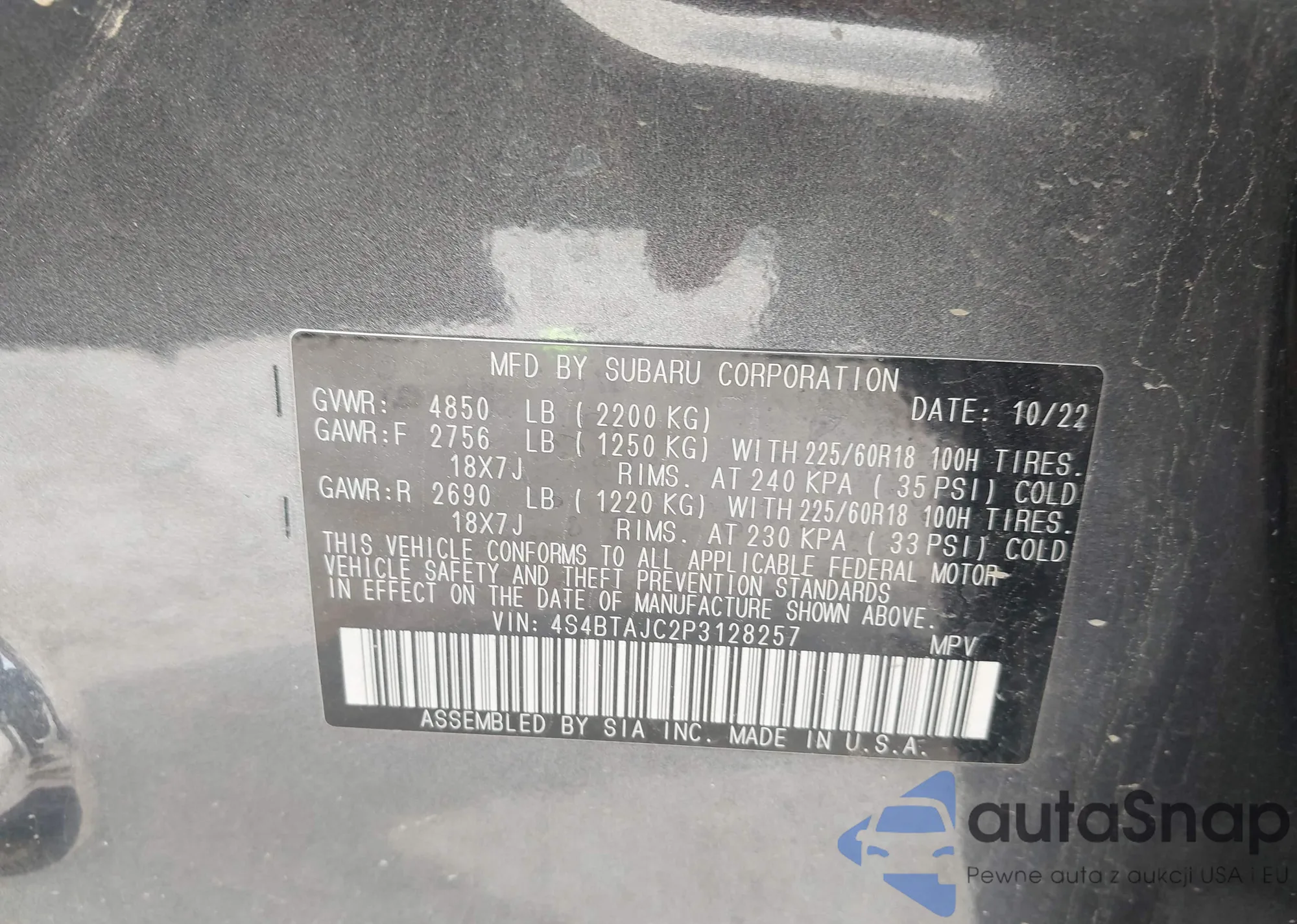 • VIN 4S4BTAJC2P3128257