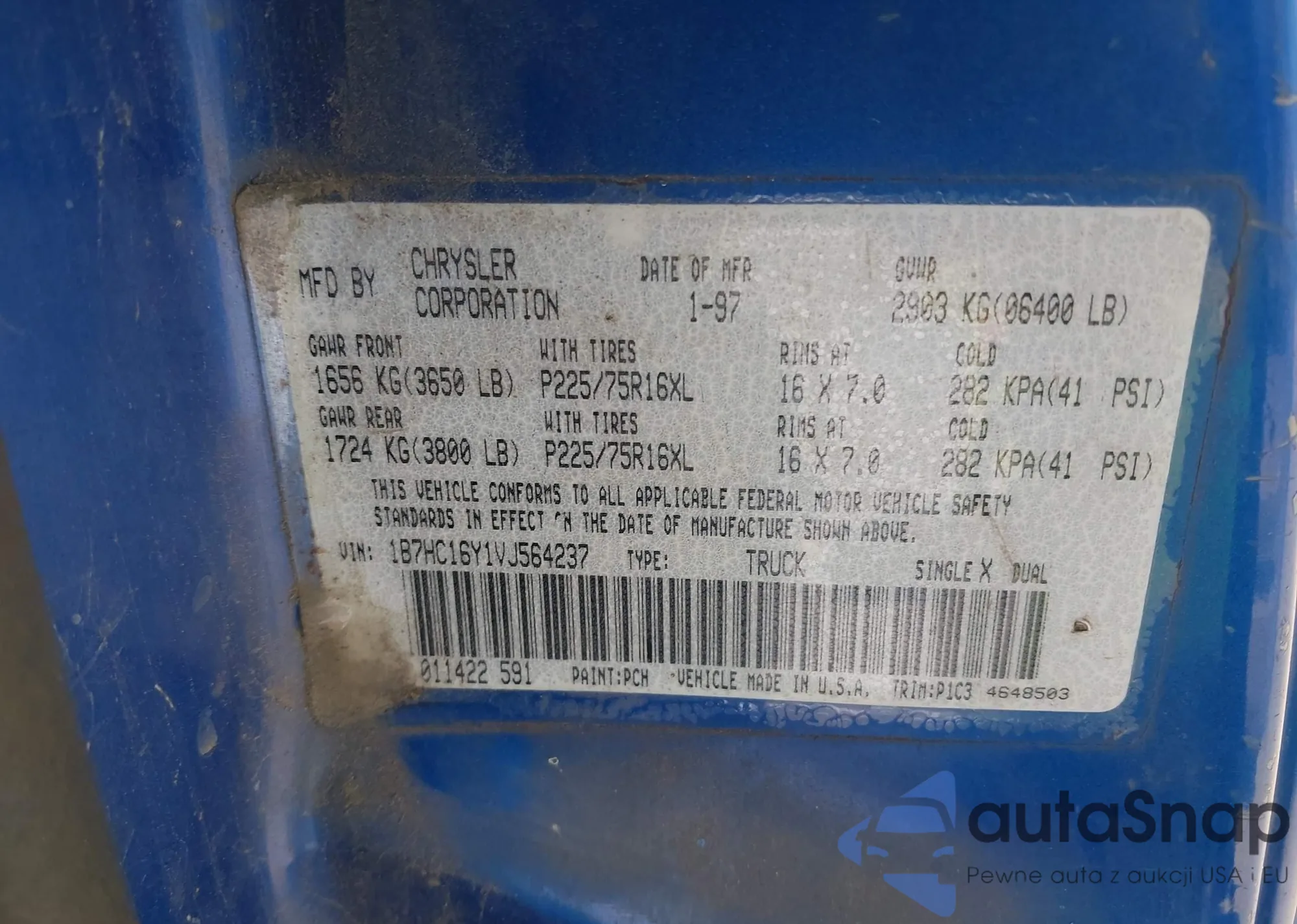 LOT: 42277359 VIN: 1B7HC16Y1VJ564237