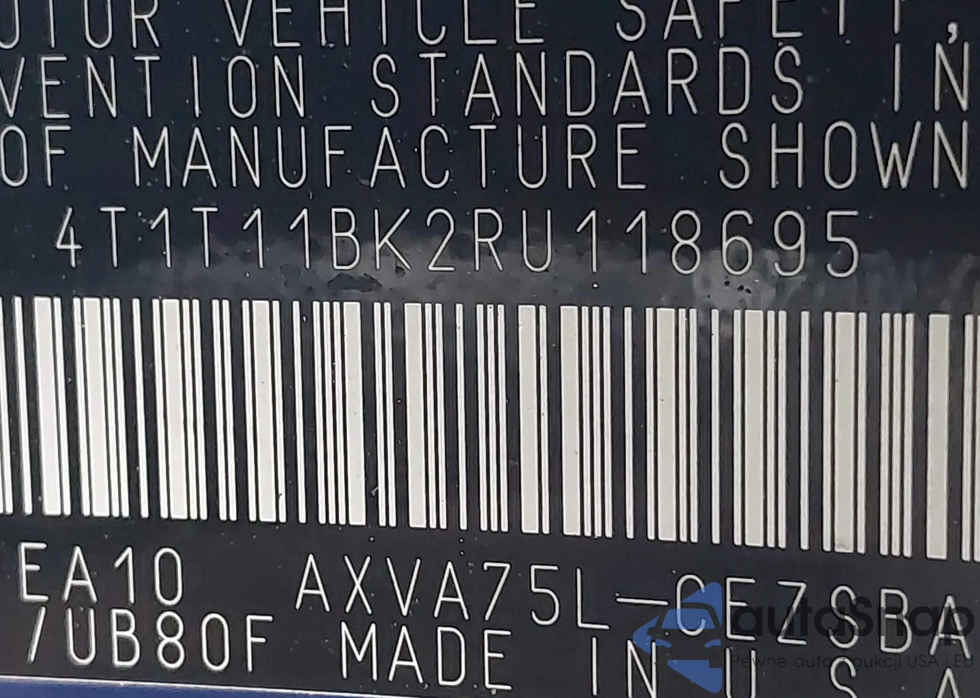 • VIN 4T1T11BK2RU118695