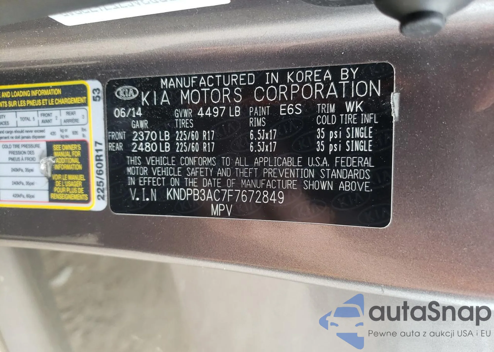 • VIN KNDPB3AC7F7672849