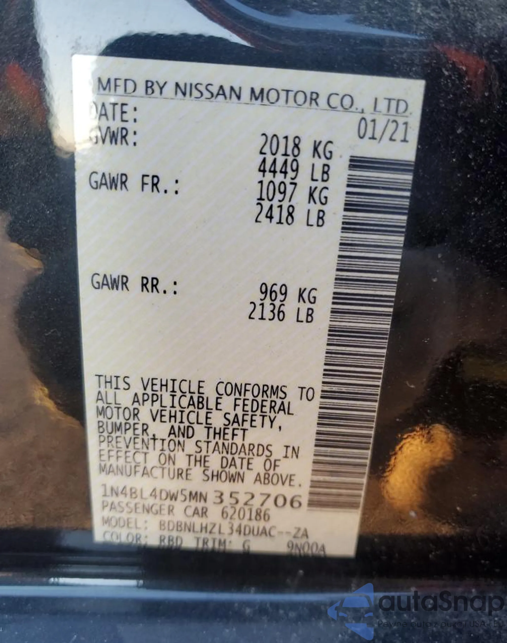 LOT: 57827565 VIN: 1N4AL21E59C100663