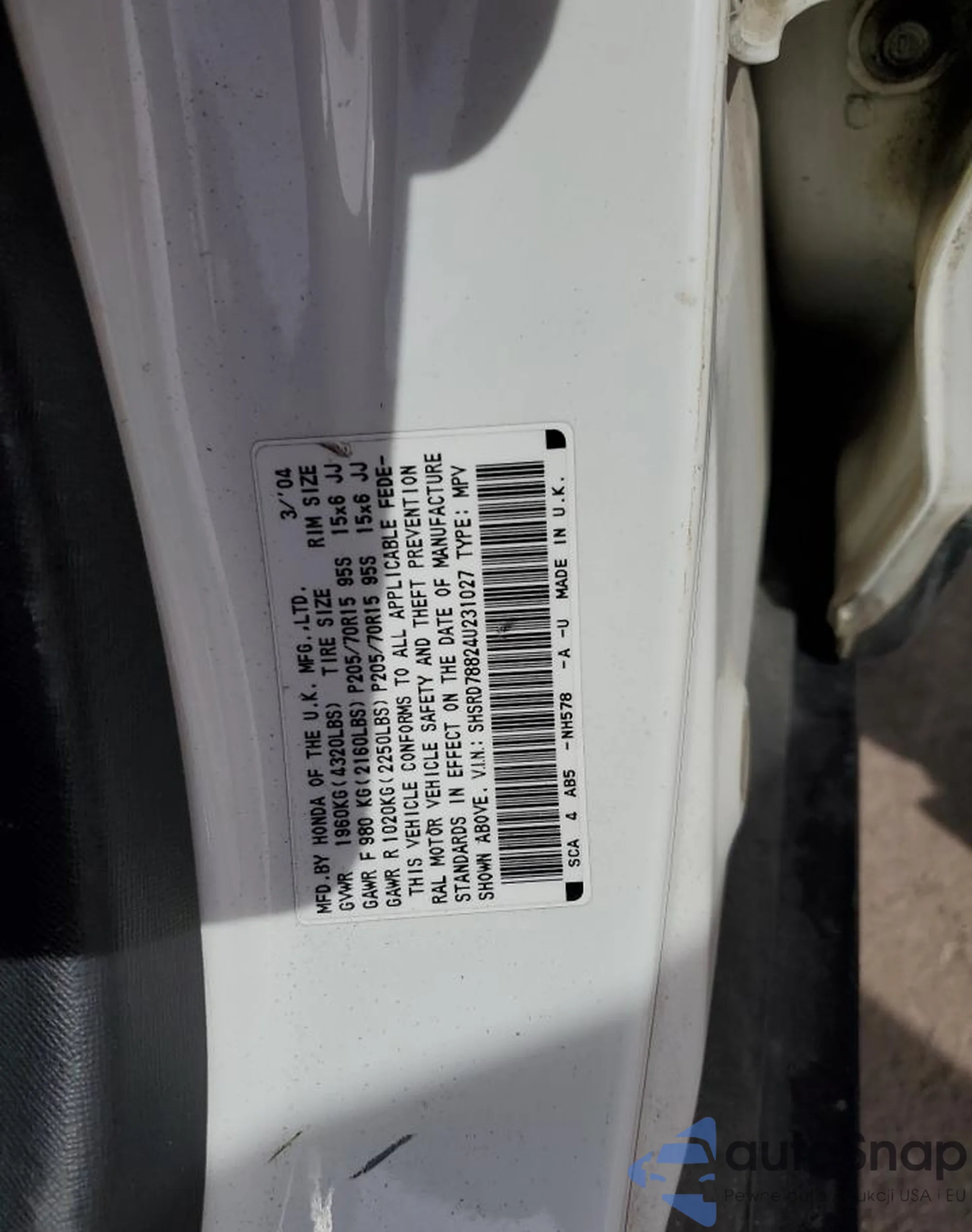 • VIN SHSRD78824U231027