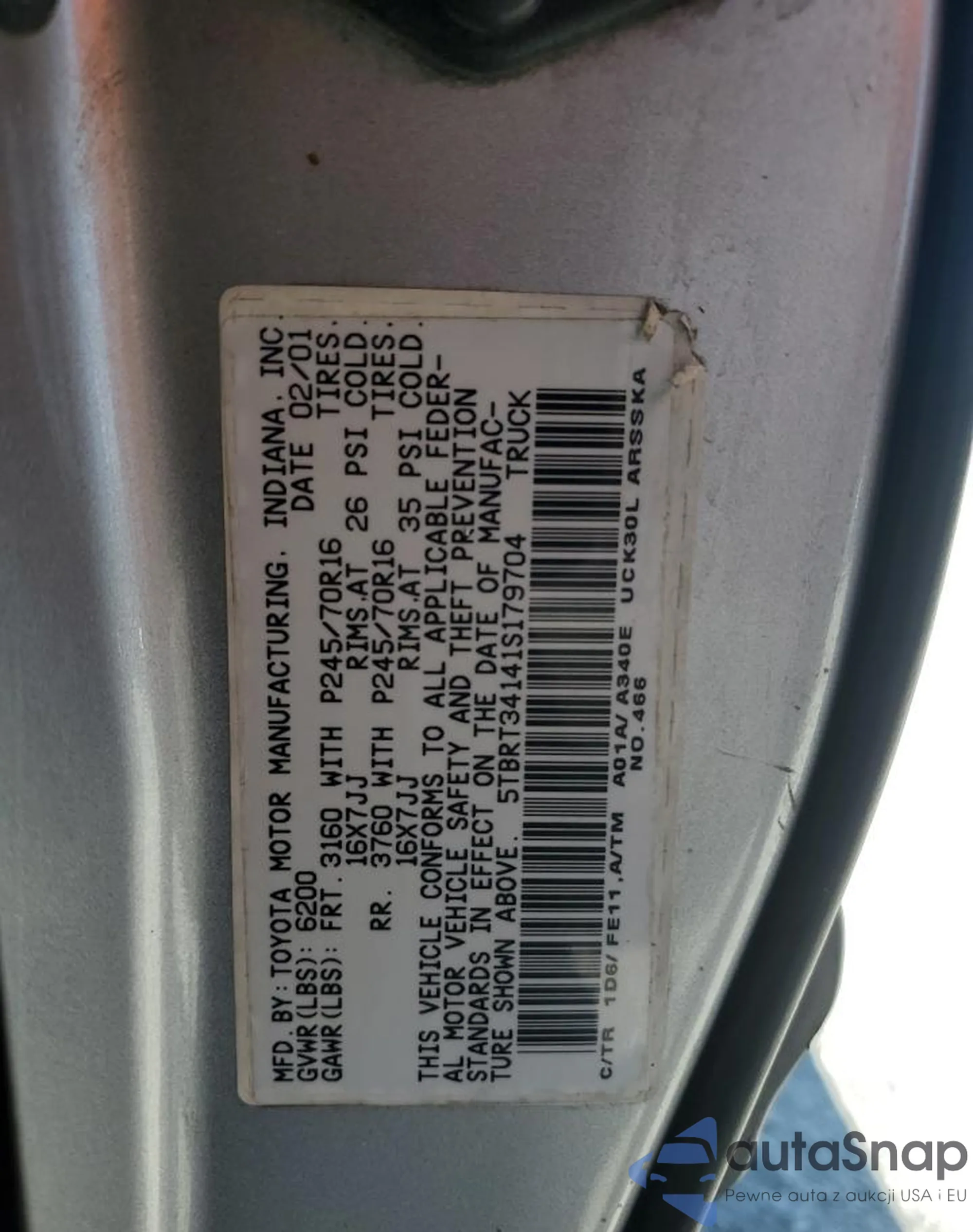 LOT: 55180725 VIN: JM1BL1V75D1708997