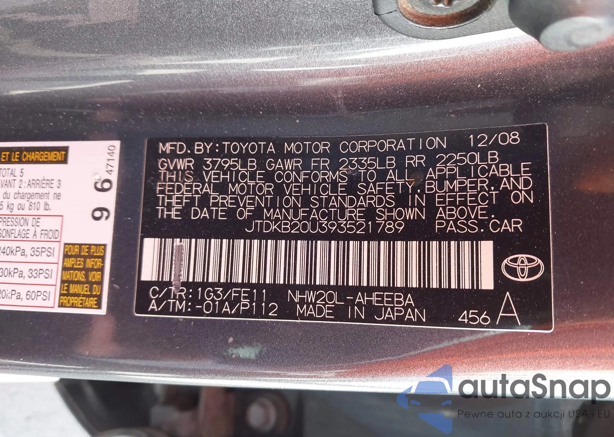 LOT: 41922237 VIN: 5UXTY3C02M9F37961