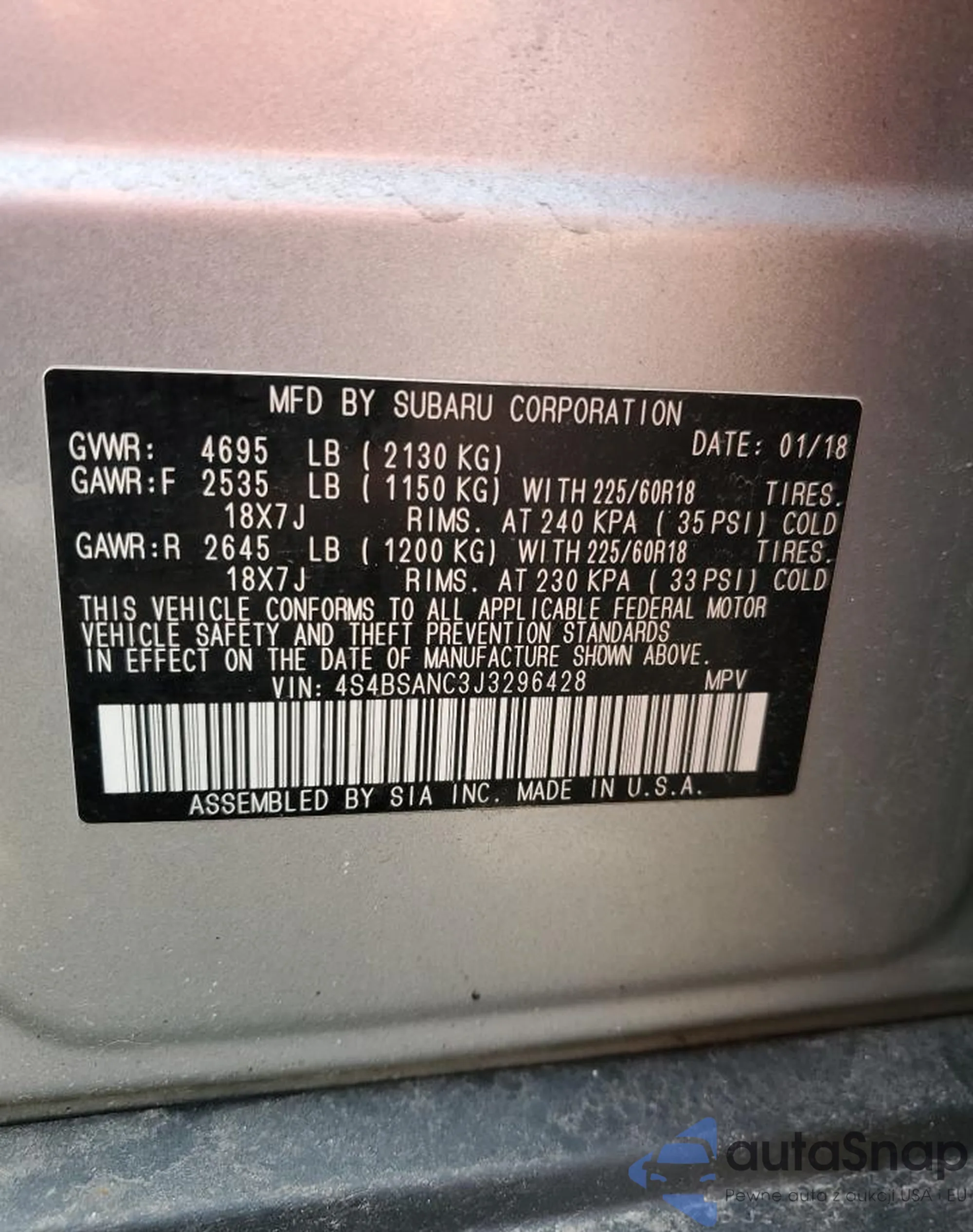 • VIN 1N4BL4CW4KN321879
