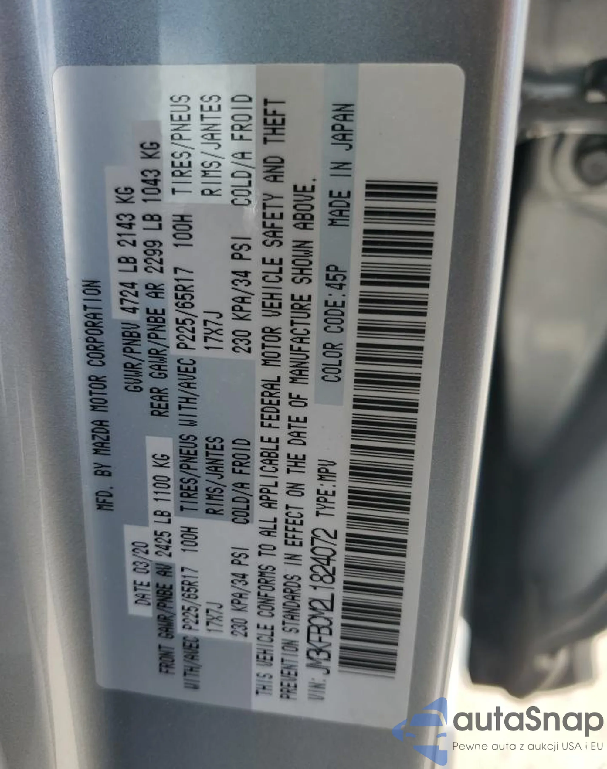 LOT: 54825295 VIN: JM3KFBCM2L1824072