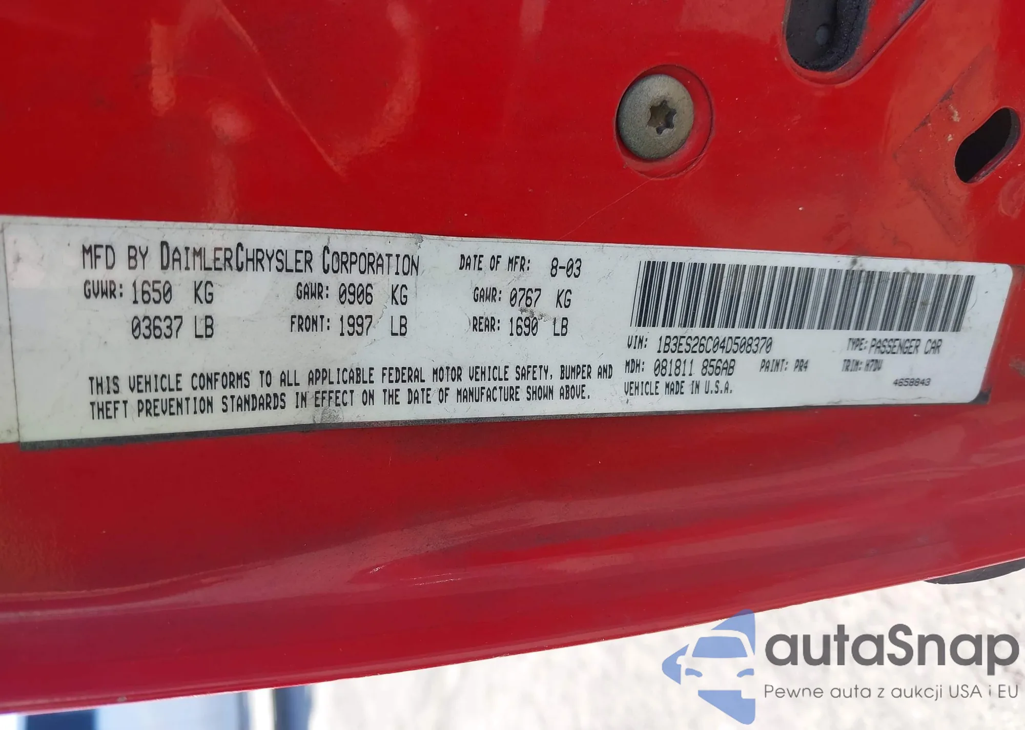 LOT: 42286709 VIN: 1B3ES26C04D508370