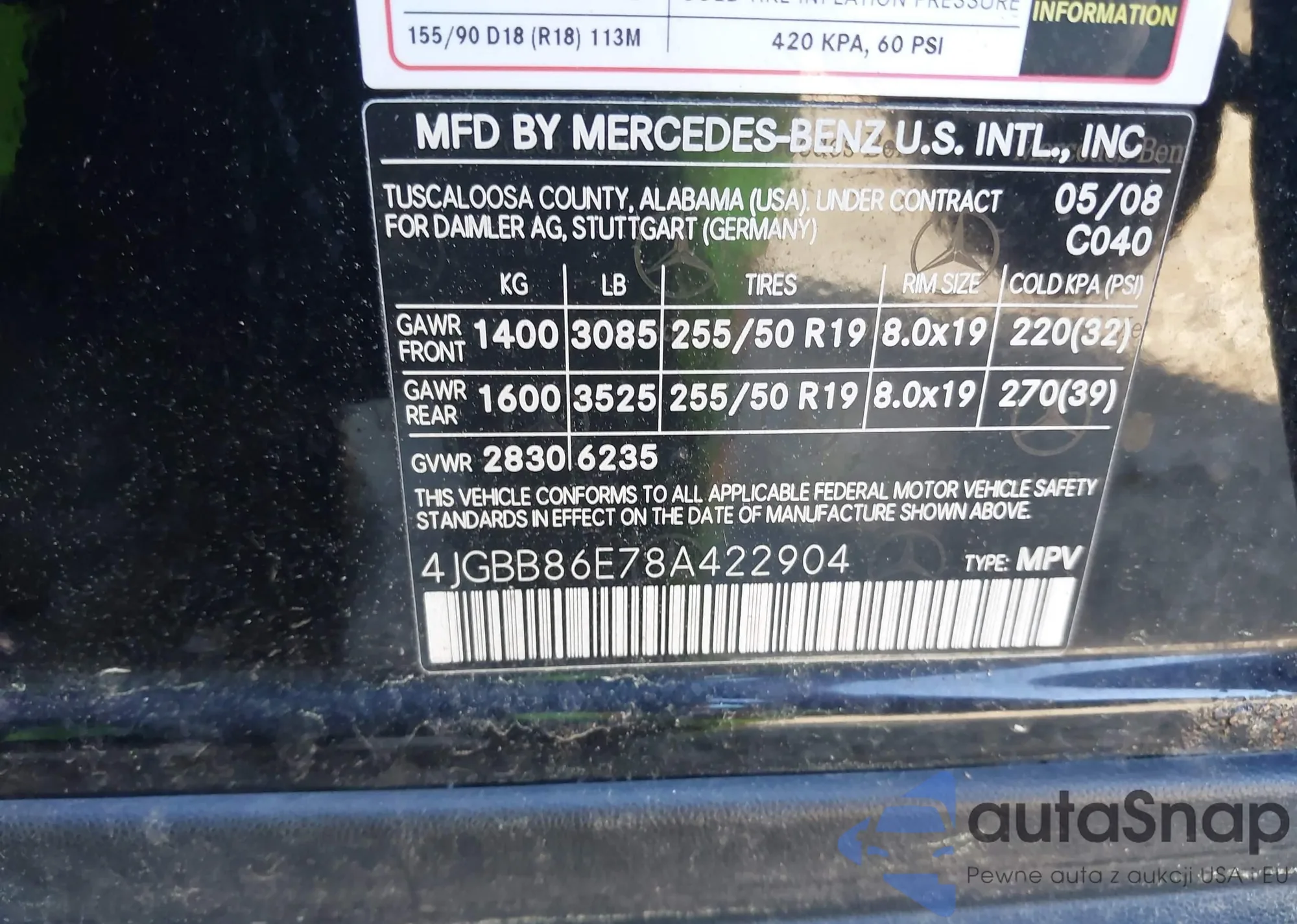 LOT: 42320429 VIN: 4JGBB86E78A422904