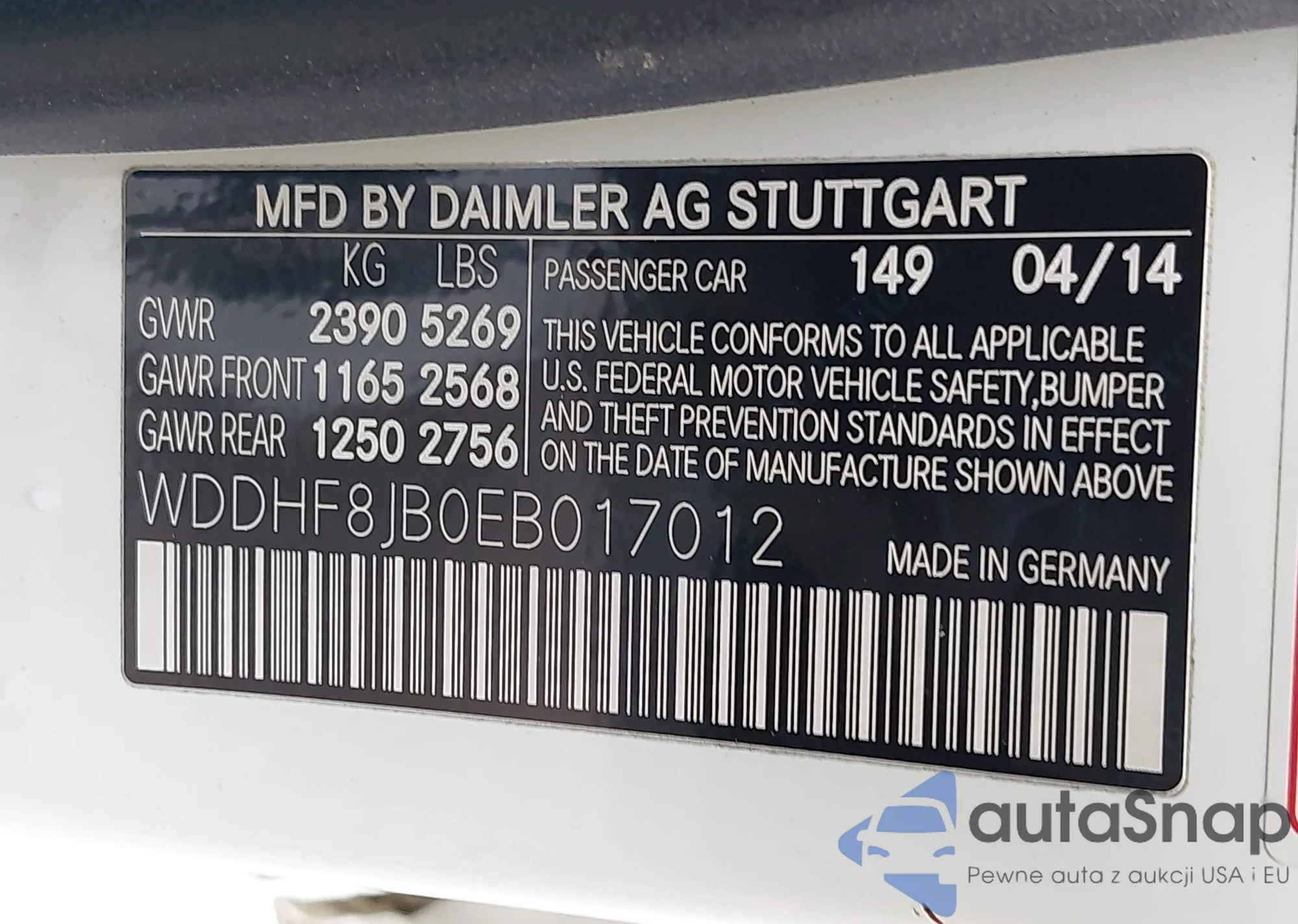 • VIN WDDHF8JB0EB017012