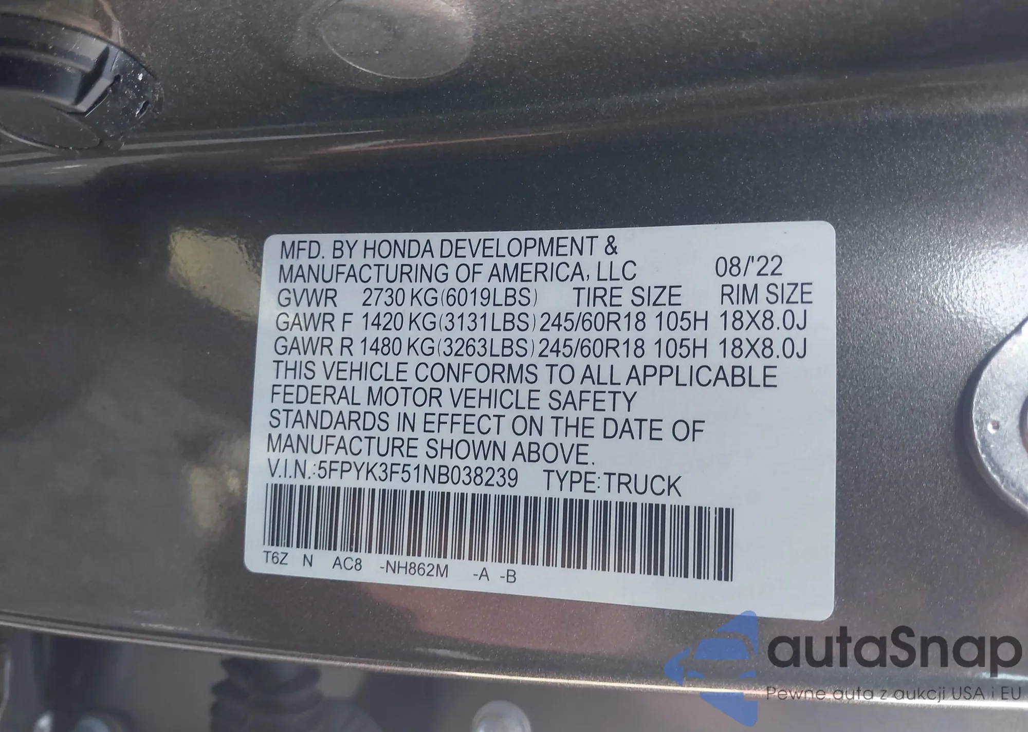 LOT: 42281684 VIN: JTEFU5JR6N5256190