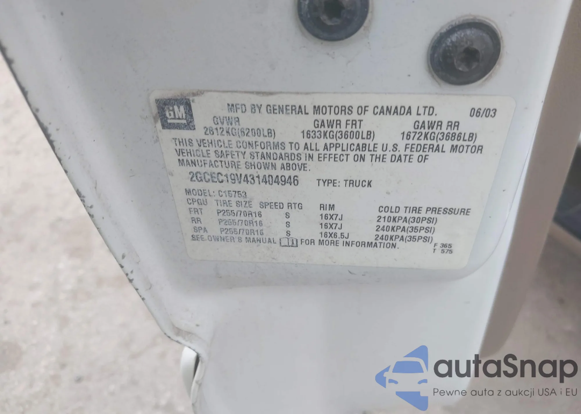 • VIN 2GCEC19V431404946
