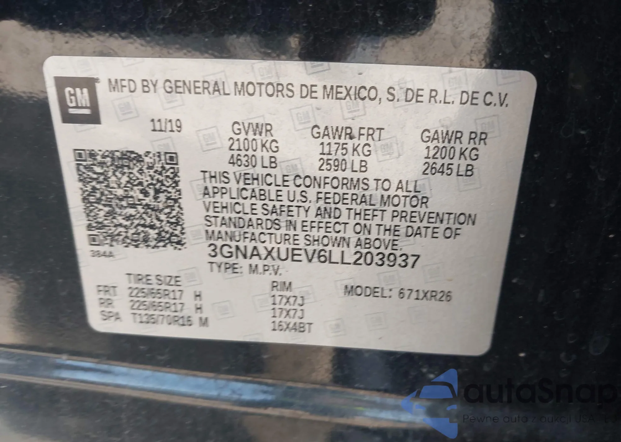 • VIN 3GNAXUEV6LL203937
