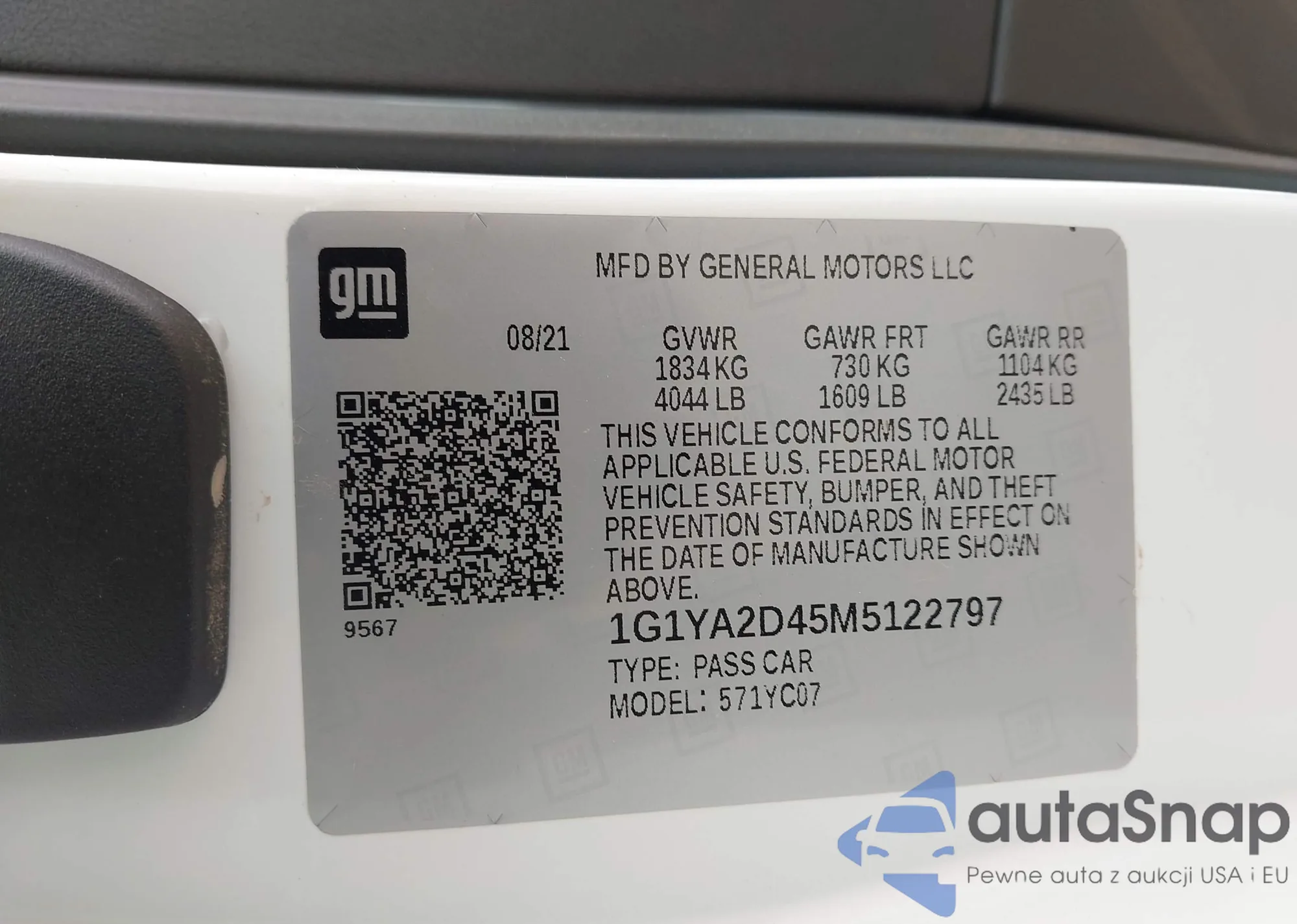 LOT: 41789327 VIN: 1G1YA2D45M5122797