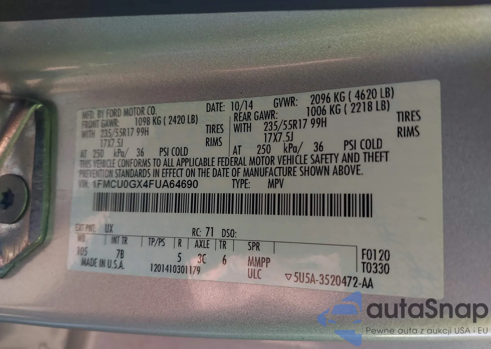 • VIN 1FMCU0GX4FUA64690