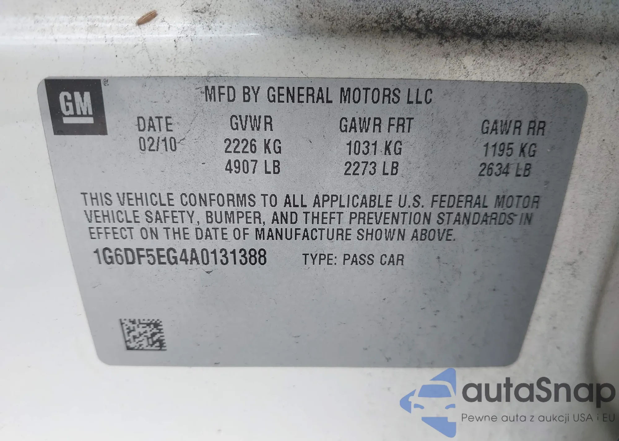 • VIN 1G6DF5EG4A0131388