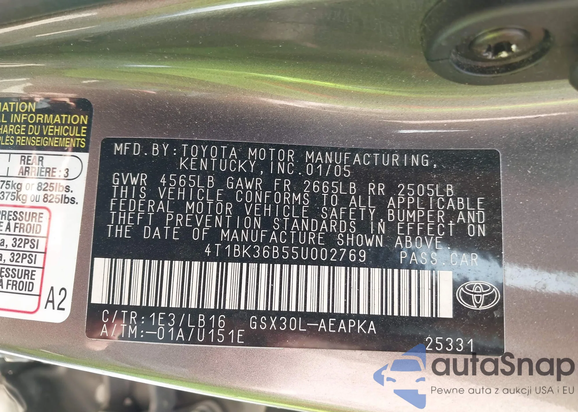LOT: 42228778 VIN: 4T1BF28B14U380288